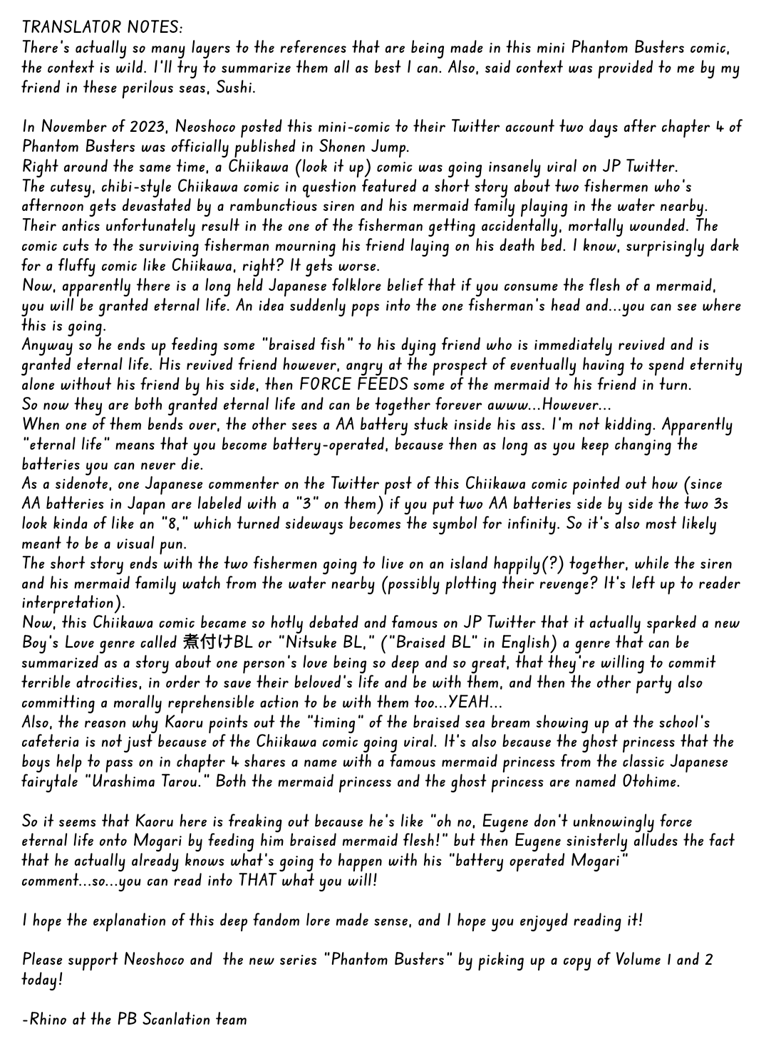 I could do a little more about Sakura himself but I do think I'd like to at least read a little more. I don't dislike it, though. Art is nice and the fights are alright. And Kotoha is fun, really like her design. Ofc cute guys too. And neck biting! I feel weird posting this much when I'm not even thirty chapters in, feels unfair toward it, lotta stuff can happen later, but couldn't shake these thoughts.