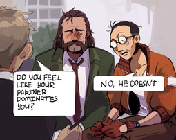 I know very little about Sword art online, just vaguely that it's about a VR game and there's waifus, so it totally threw me off when I found out there's a prominent BL ship in the fandom. Quite fascinating.