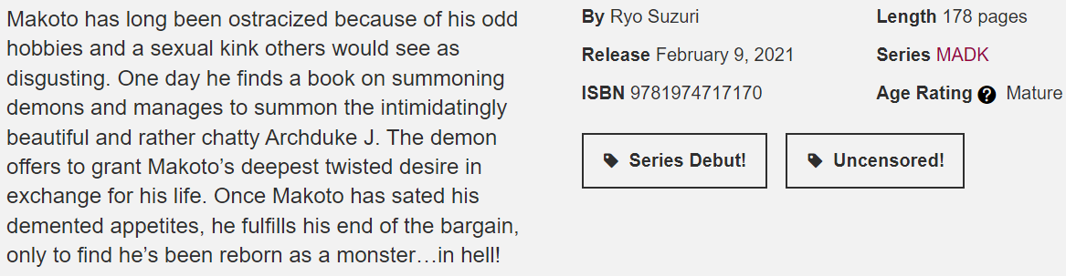 >>2883I vaguely remember they published Eerie Queerie! (jp: Ghost!) back in like 2003. That was like the only BL besides Gravitation and Fake I even remember being in physical print in America at the time (and the last volume of Fake had plastic wrap so you couldn't see the nsfw–do they still do that?).