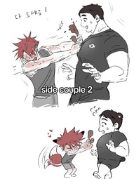 The alpha in You Are My World is batshit, but I love him. It's hilarious reading the comments on mangago since they're so divided on who to support, him or the omega and most of them seem like they've never read omegaverse stories lol. I do wish the redhead + bear side couple had reversed positions; Redhead is definitely the bottom since there's pics floating around from bboong where he's wearing a butt-plug tail. From Never Understand/Out of Control, I notice bboong likes to make more conventional pairings for her side couples.