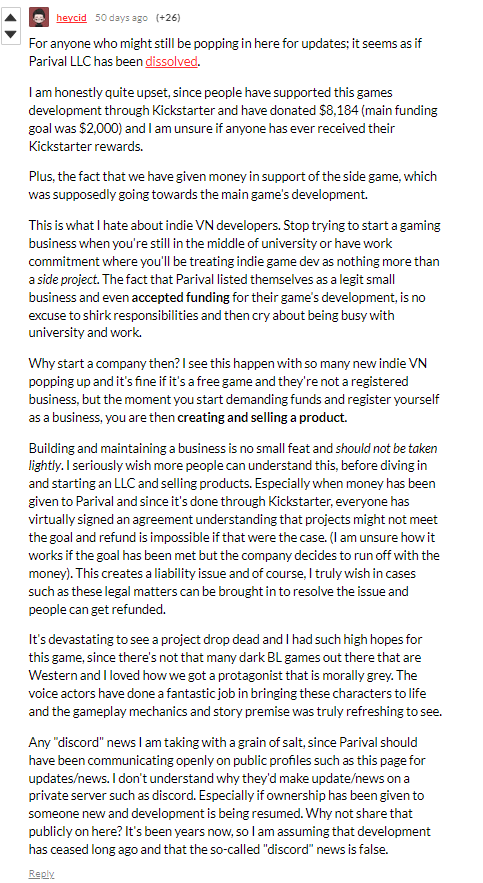 >Times, tastes, and expectations for what a BL game should be have changed since then, partially because of what that game did; it was completely unique from both its contemporaries and its predecessors not only in the realm of bobge but in much of BL in it's entirety, and it was well recieved in Japan and the rest of Asia even if the insignificant blip on the map that is the English-speaking bl game audience of megaweebs gave it a lukewarm welcome.Please, it's hardly a beep compared to most VN and that was when VN were still decently popular and we hardly get tl. It's a boring VN where sex scenes are with dead fishes and the story is told in the same way 4 times. Even the devs acknowledged the lack of real BL feeling and romance.
