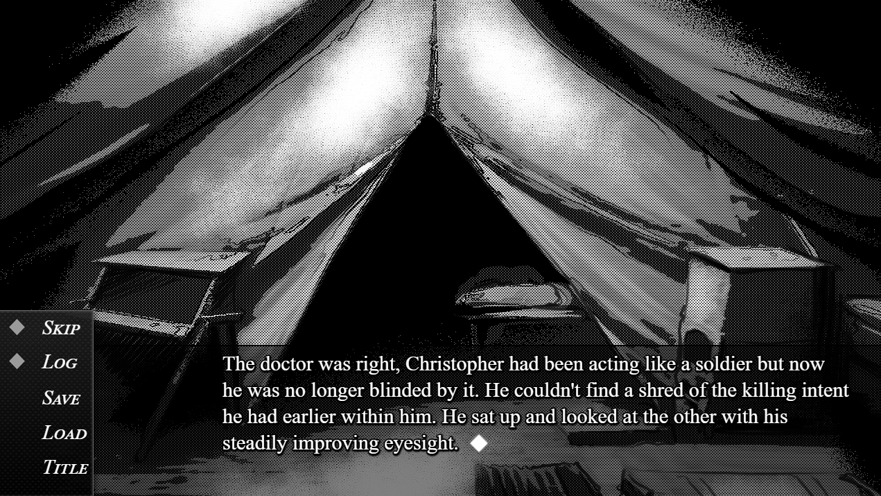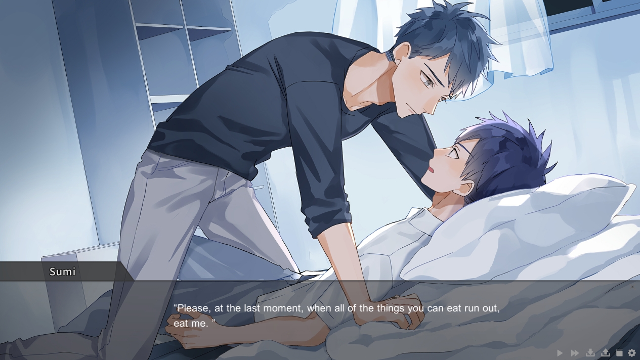 I like the dynamic of two guys on opposing sides of a war having to work together for their survival. There was a tragically short science fiction BL manga I read a long time ago with a very similar premise. Coincidentally, I'm pretty sure one of the guys was a medic, too. It almost makes me wonder if this was inspired by that manga. The manga is called Blue Nathanael, and while I don't exactly recommend it, this VN really reminded me of it. I would have liked if it were a little longer, but I'm probably being a little hypocritical considering I read it specifically because it was so short kek. Also, I was fully expecting