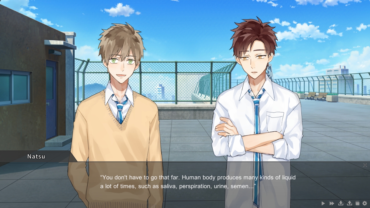 The protagonist does start out with an established physical relationship with 2 of the 4 guys, though. Still, there's a lot of flirting and engagement before you actually enter their routes. I love it a lot, and it's one of my favorite BL games! The only downside is the art style…
