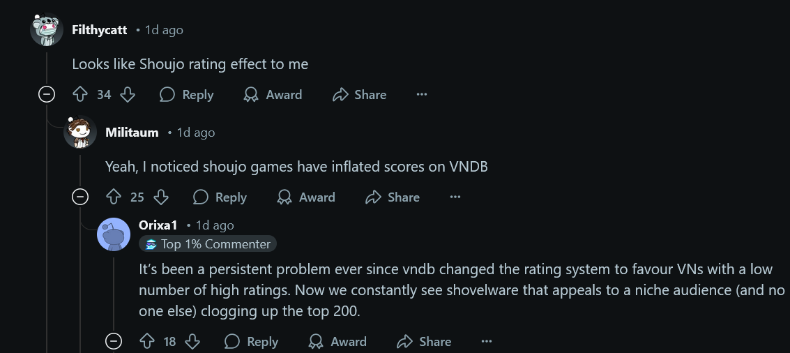 Try to start a discussion about a game you do like instead of complaining about what you don't. Ntyfag was effective in drumming up interest in her favorite games by talking them up and posting cute fanart and memes of them. Vns are a niche medium and most anons are only aware of the bigger titles, untranslated works in particular are alien them. Periodically yelling into tiny imageboard voids until a unicorn who played your obscure 20 year old bl game falls right into your lap is an awful strategy if your goal is to shift the focus onto other games for a change, instead you should be active in encouraging new people to play them.