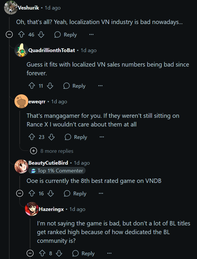 Here's some mild anger from the visual novel subreddit about Mangagamer's announcements if anyone wants a laugh.