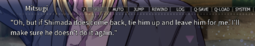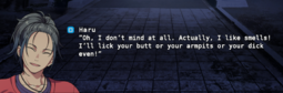 It reminded me of other VNs I've played where I just felt like you had to get on a route to be able to experience any kind of sexiness to it. I want more teasing, more flirting, more touches, more engagement before starting a route.