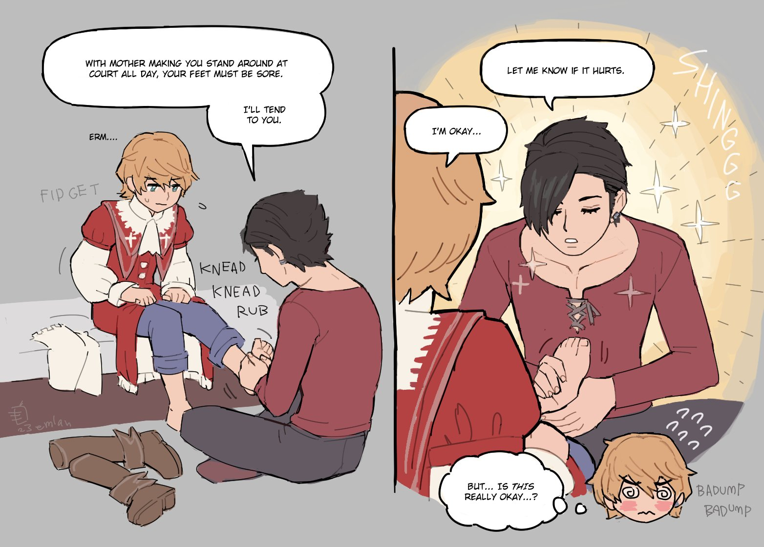>>4081>Their relationship at the start of the game is super sweet, and then you realize incest is canon in their family and they've got all the necessary genes to be actually insane for each other.Before I played the game I saw a bunch of shipping art of them on my twitter following page and thought to myself "Oh, that's what the fujos are going for? Unusual." Then when I played the game myself I found not only Clive/Jill boring but also Dion/Terence as far as an actual canon gay ship goes and Clive/Joshua was the most interesting option.