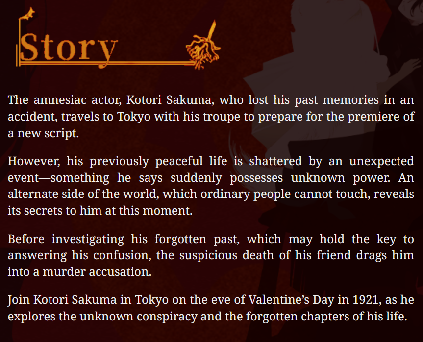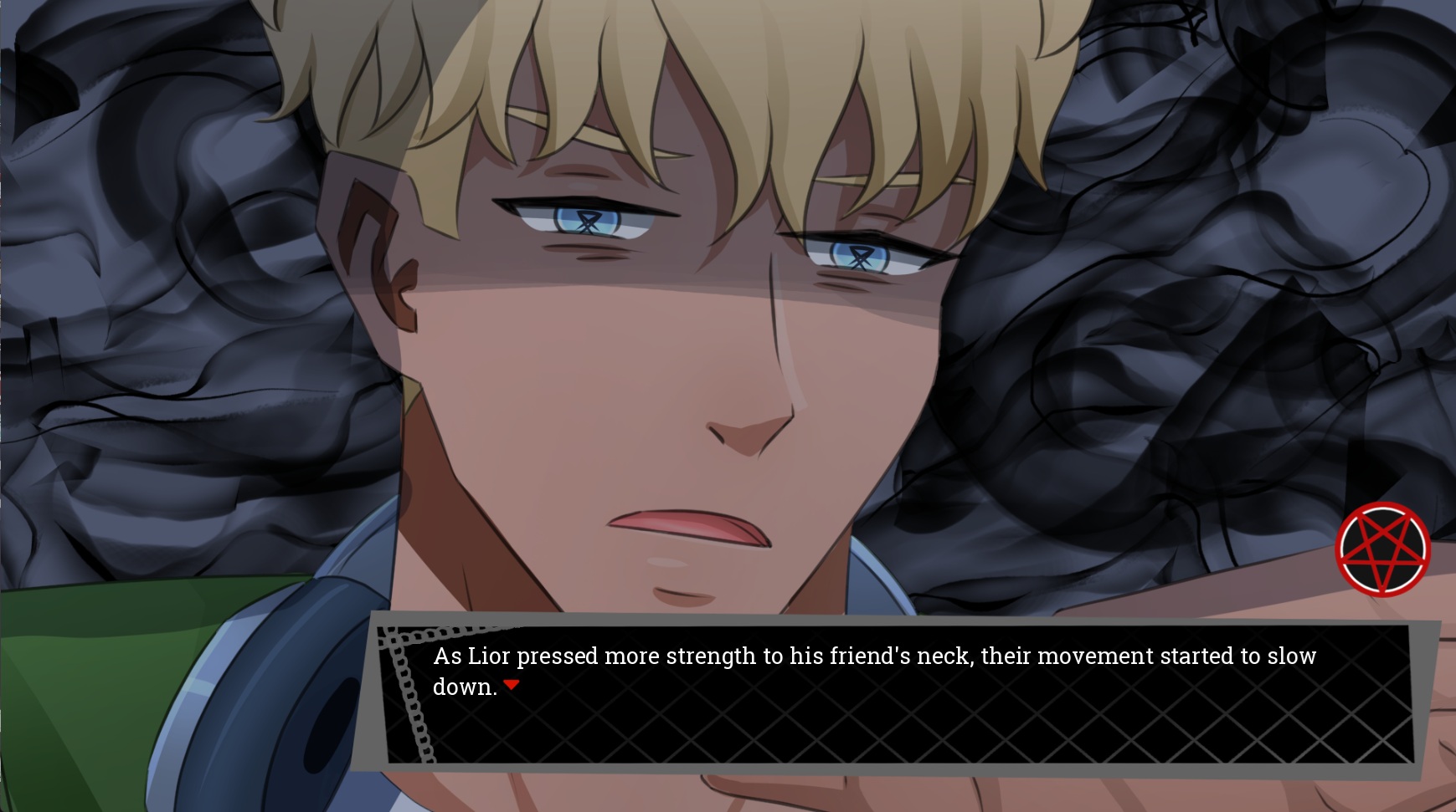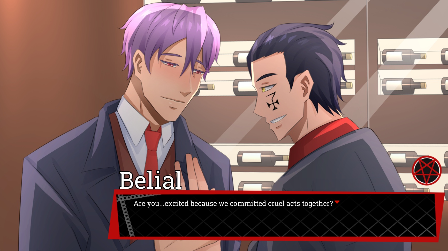 https://chanimk.itch.io/a-pact-with-me"A Pact with Me" was the next one on the list, and it is a perfectly fine 5/10 VN. It was about four hours long and had three main routes with multiple good and bad endings for each boy. The story follows Belial, a demon who 100 years ago fell in love with the man he had made a demonic contract with. After the twenty years of the pact were up, he had to collect his lover's soul and ate it, leaving no trace of the man in existence. Now heartbroken, he avoids making any more pacts, but after years of no contracts, he is weakened and starved, on the brink of death. Lucifer tasks you with forming a pact with someone to eat a soul so you don't die.