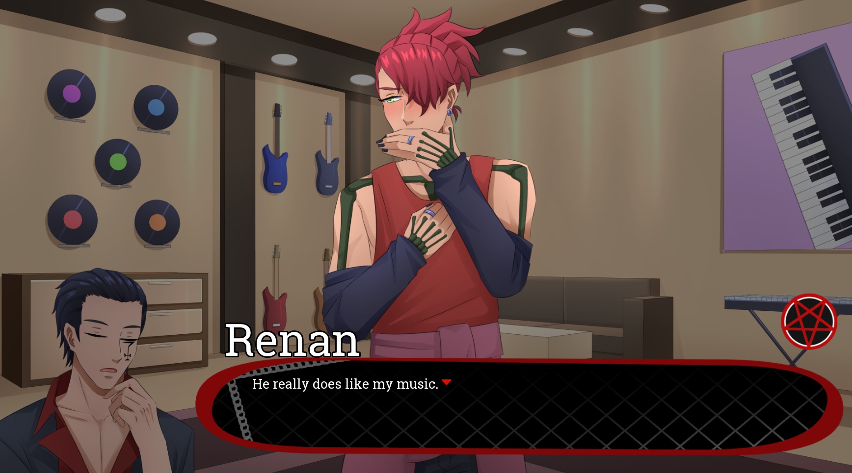 The main romance options are Renan, a struggling musician who was probably the least interesting. His father hates him, and he's dealing with a stalker and self-consciousness about his ability to perform. Shilo, a businessman who is the sadist psycho option, has some Light Yagami energy and was my favorite as he cuts down people who get in the way of his company. And lastly, Lior, a very shy boy who is just seeking friends. His route starts really childish as you basically help him go viral on a social media site so he can make friends because everyone who see him hates him, but then it reveals