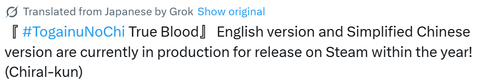 >>5368>I hope people buy it so we at least have a chance of seeing a bad egg translation within the next decade.Yeah for me this feels like a potential lose-lose situation cause if it sells poorly they have ammo to blame fujos but if the translation is bad and it sells well it could come off as fujos buying something regardless of quality.