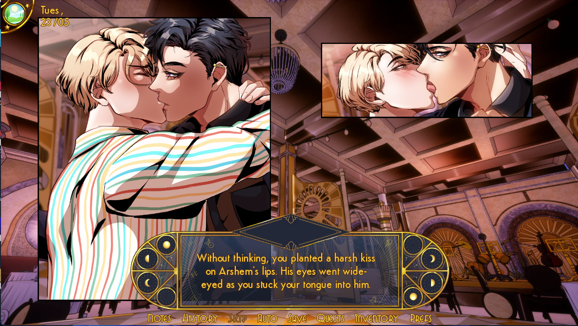I also discovered that Luna has a function that adds furigana and one-click word lookup, and I feel like I've been retaining a lot more Japanese reading this than I have just doing regular studying. Either way, the mystery and atmosphere are top notch, Neil is dreamy, I can't wait to do Leonid's route next.