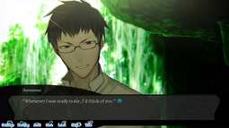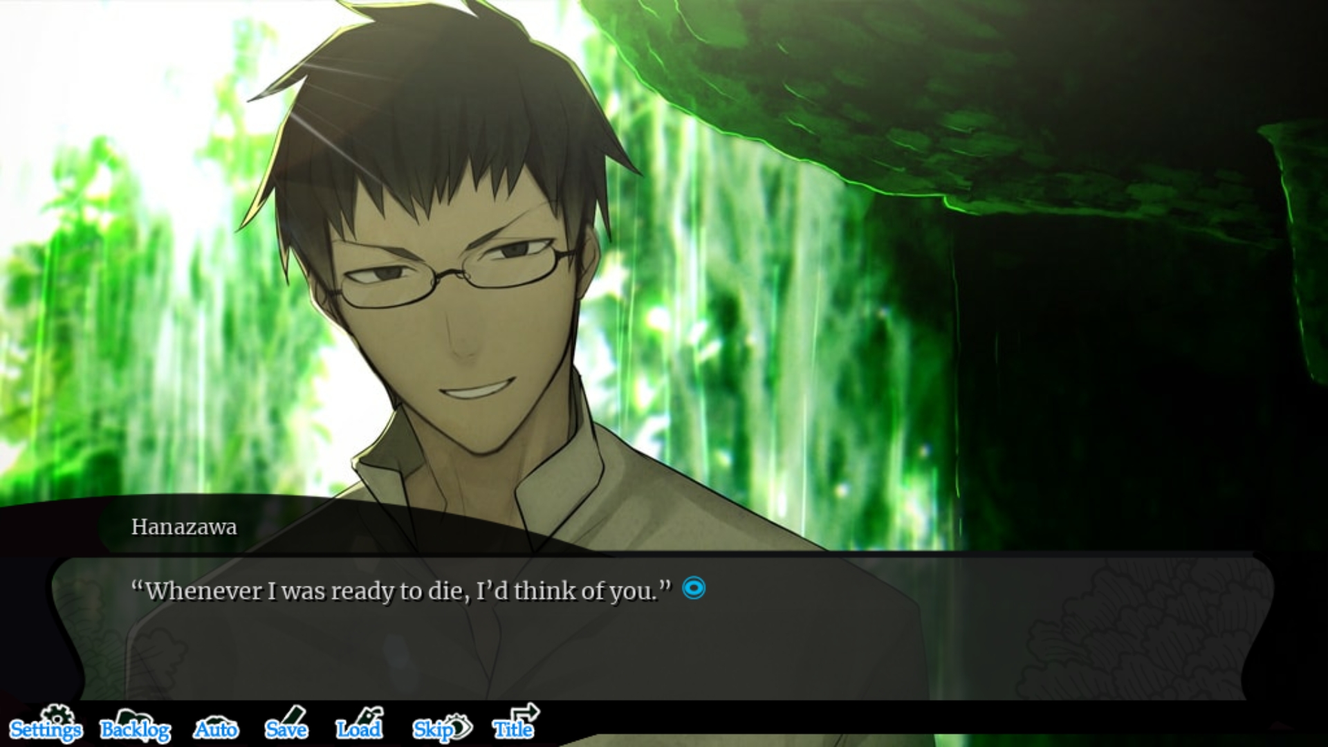 The mystery was easy to figure out, and I had correctly guessed all of the twists before reaching the true route. However, I still had a lot of fun with it. The ending was very satisfying, and I'm glad I played it. Also (major spoilers, although you can figure this out long before it's revealed), the fact that in retrospect, Rinne is having to watch a past version of her dad (with full knowledge he is her dad) and his dead best friend go through their awkward tsundere romance bullshit while trapped in a life-or-death situation is incredibly funny. It also makes any situation where she's teasing them about having feelings for each other while they vehemently deny it so much funnier.