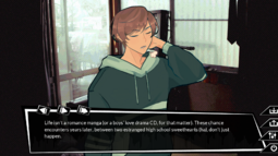 https://qbstudios.itch.io/ante-holicThis is an hour-long kinetic VN about a demon and cop duo trying to track down a murderer, but really it's a prequel to a still-in-development VN and seems mainly interested in setting up its world and characters. The whole thing has the feeling of someone playing with their OCs, which isn't bad; it's just not exactly the deepest story since the murder mystery takes a back seat to the author explaining her universe's soulmate-identifying marks, and how angels, witches, and demons work. I liked it; it's ridiculously easy to sell me on detectives, so I'd give it a 3/5, but it's too short to really recommend. It might be better and/or worse if the full thing ever comes out.