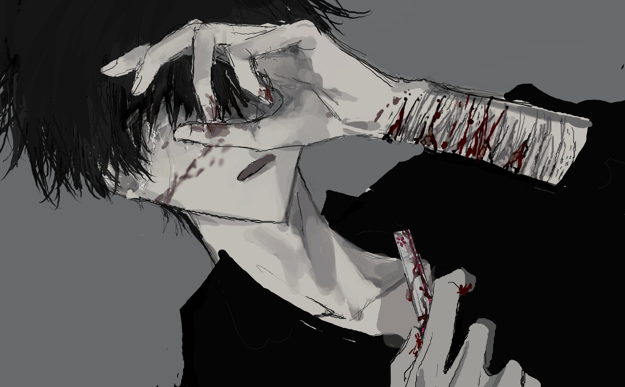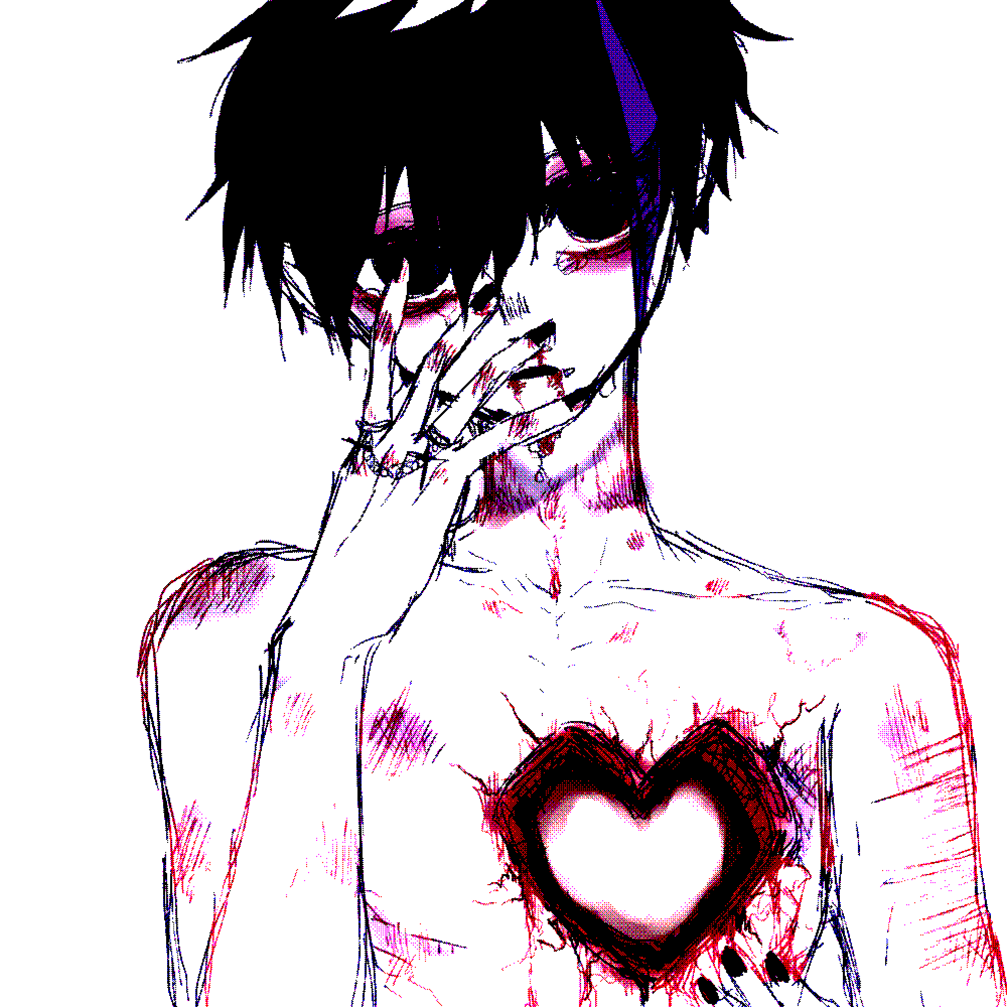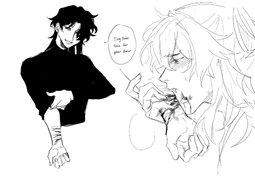 >>832akechi had soooo much guro fanart (and fic), but it’s tragically hard to find now because so much of it was on tumblr and was lost in the nsfw purge. so, i’m kinda in the same boat.