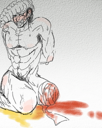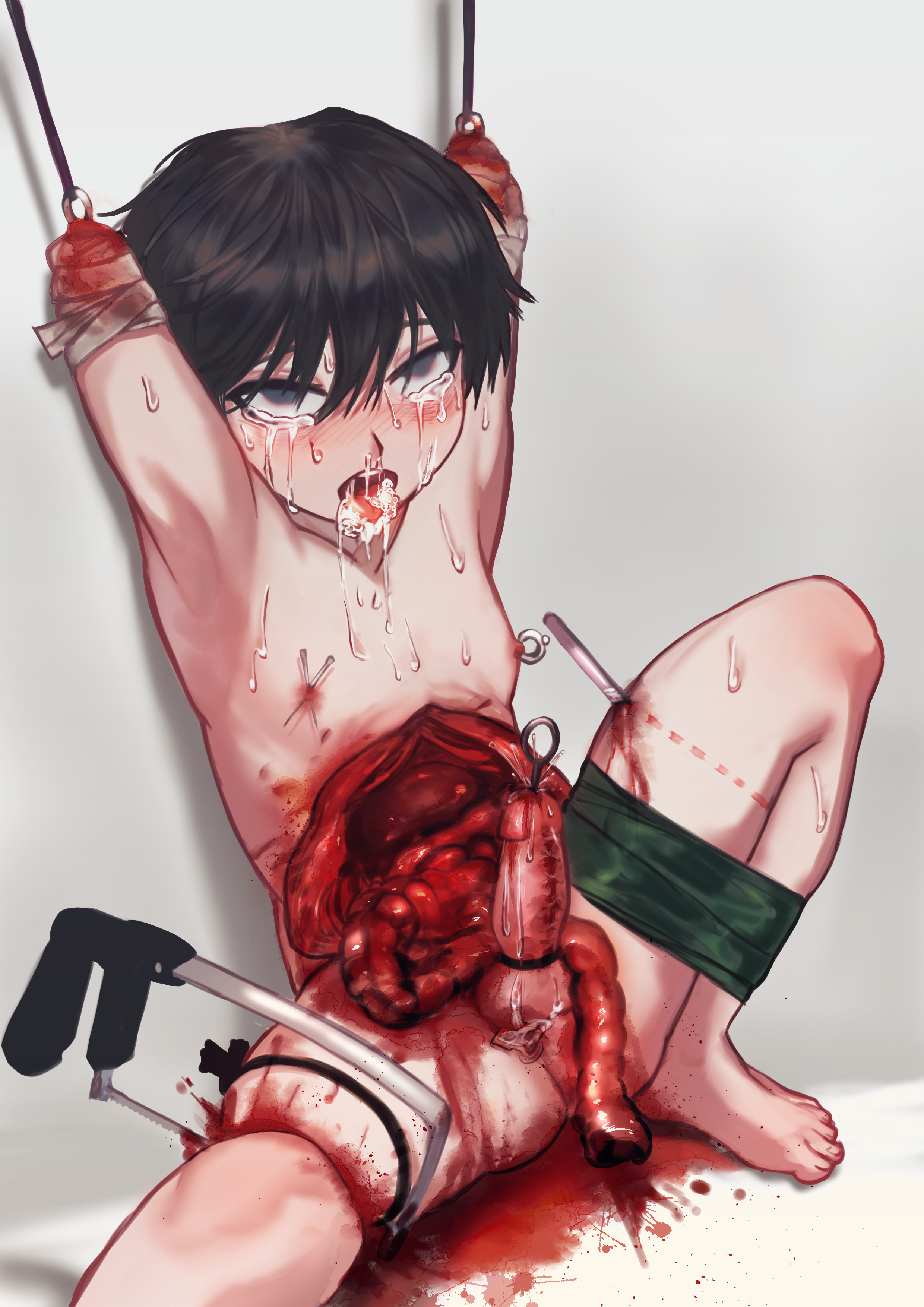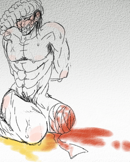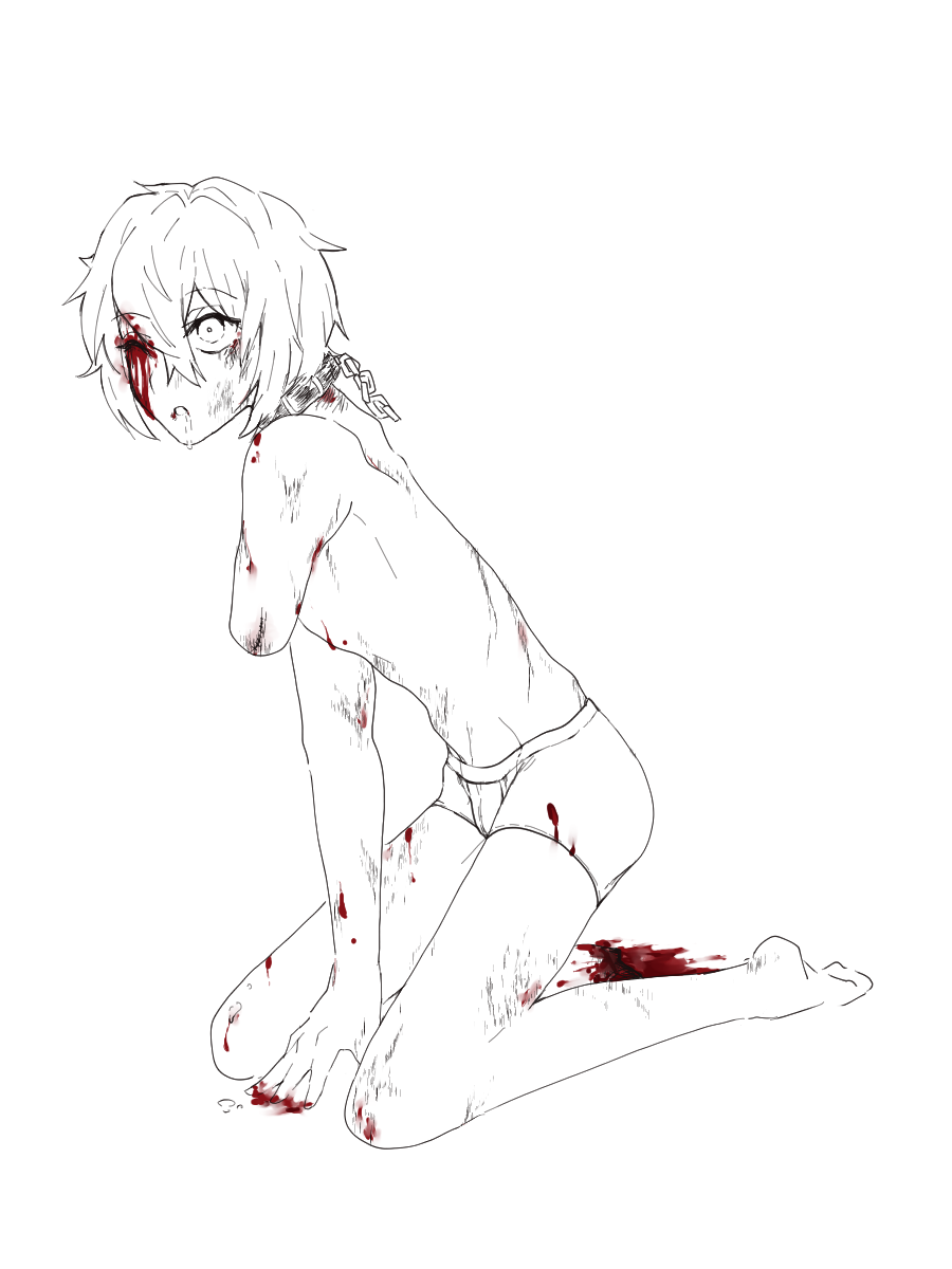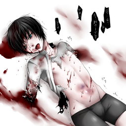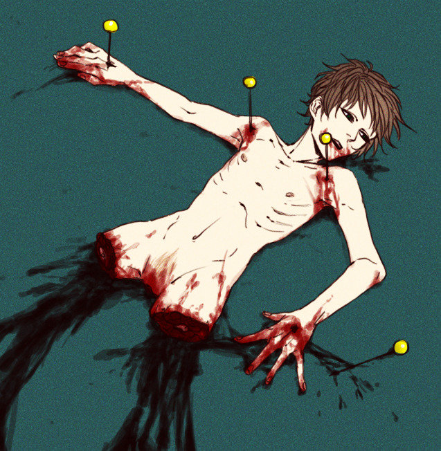 The first chapter is my favorite so far. Yoshi is such a cutie! I love the ugly expressions he makes as his arm is getting cut into. I love how he throws up from the pain. I love how he begs and pleads for his life. I love how absolutely horrified he looks when he sees all of his limbs are gone, and how he hopelessly asks to just be killed after the whole ordeal. It's so good! No.554