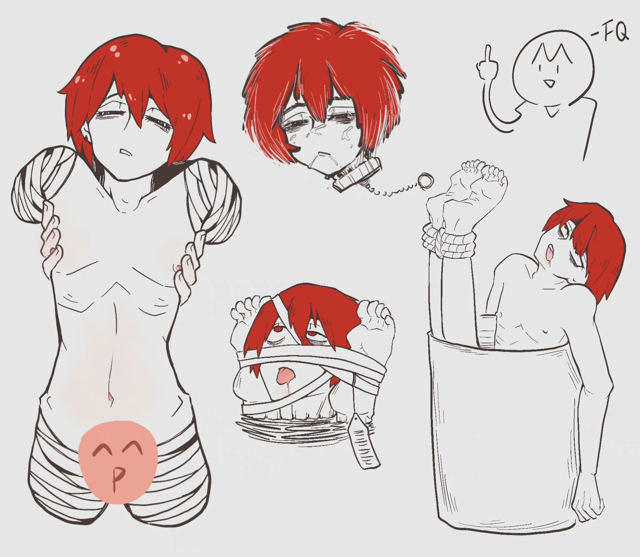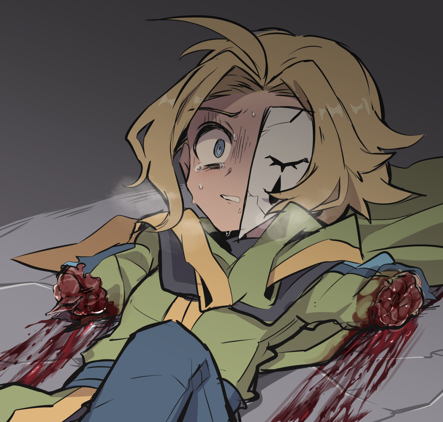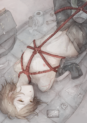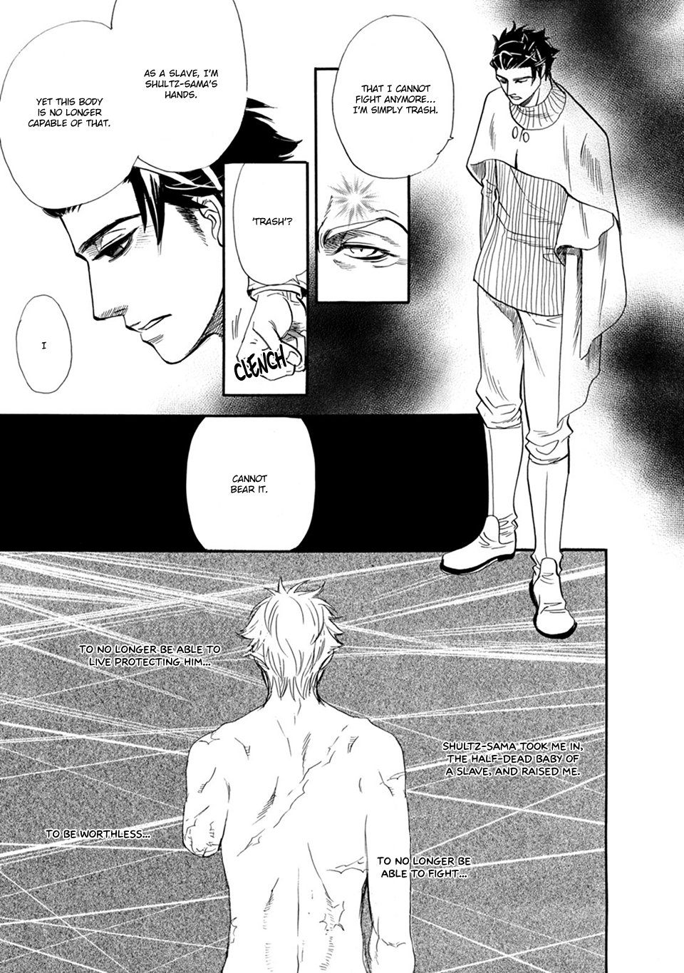 The first chapter is my favorite so far. Yoshi is such a cutie! I love the ugly expressions he makes as his arm is getting cut into. I love how he throws up from the pain. I love how he begs and pleads for his life. I love how absolutely horrified he looks when he sees all of his limbs are gone, and how he hopelessly asks to just be killed after the whole ordeal. It's so good! No.554