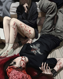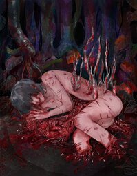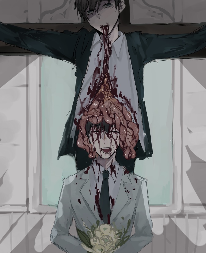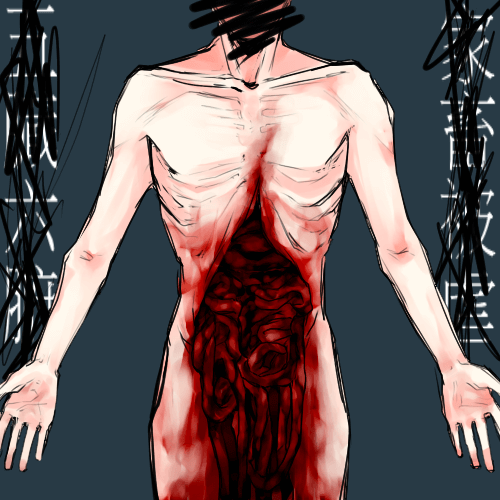 >>591God PLEASE someone tell me the source of this art, I don't normally like guro but i've fallen madly in love with the energy of this character