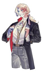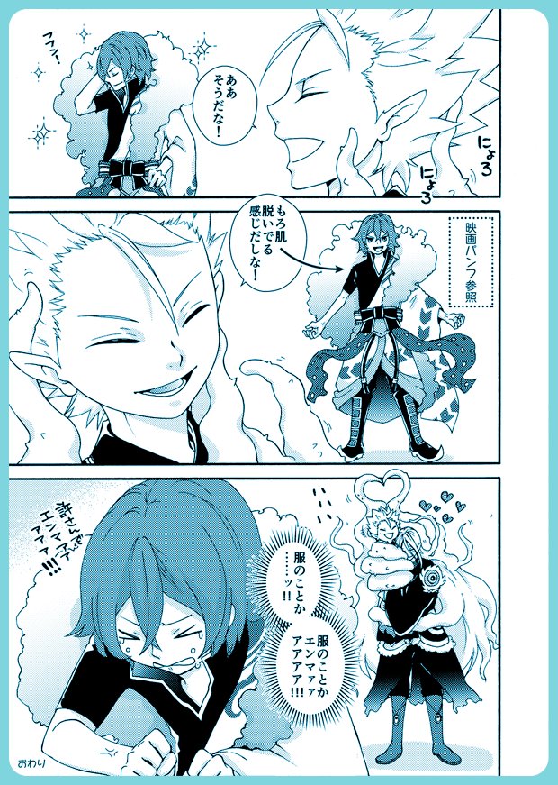 >I have no idea who the blue hair Gintoki cosplay guy isThat's Kaira who's introduced in Shadowside as a sort of one-sided rival to Enma. Personally I don't mind the pairing in theory but don't like 99% of the fan content where Kaira is weirdly moody and effeminate. That, and pairings of rivals are dime a dozen so they've gotta be really unique to stand out to me these days.