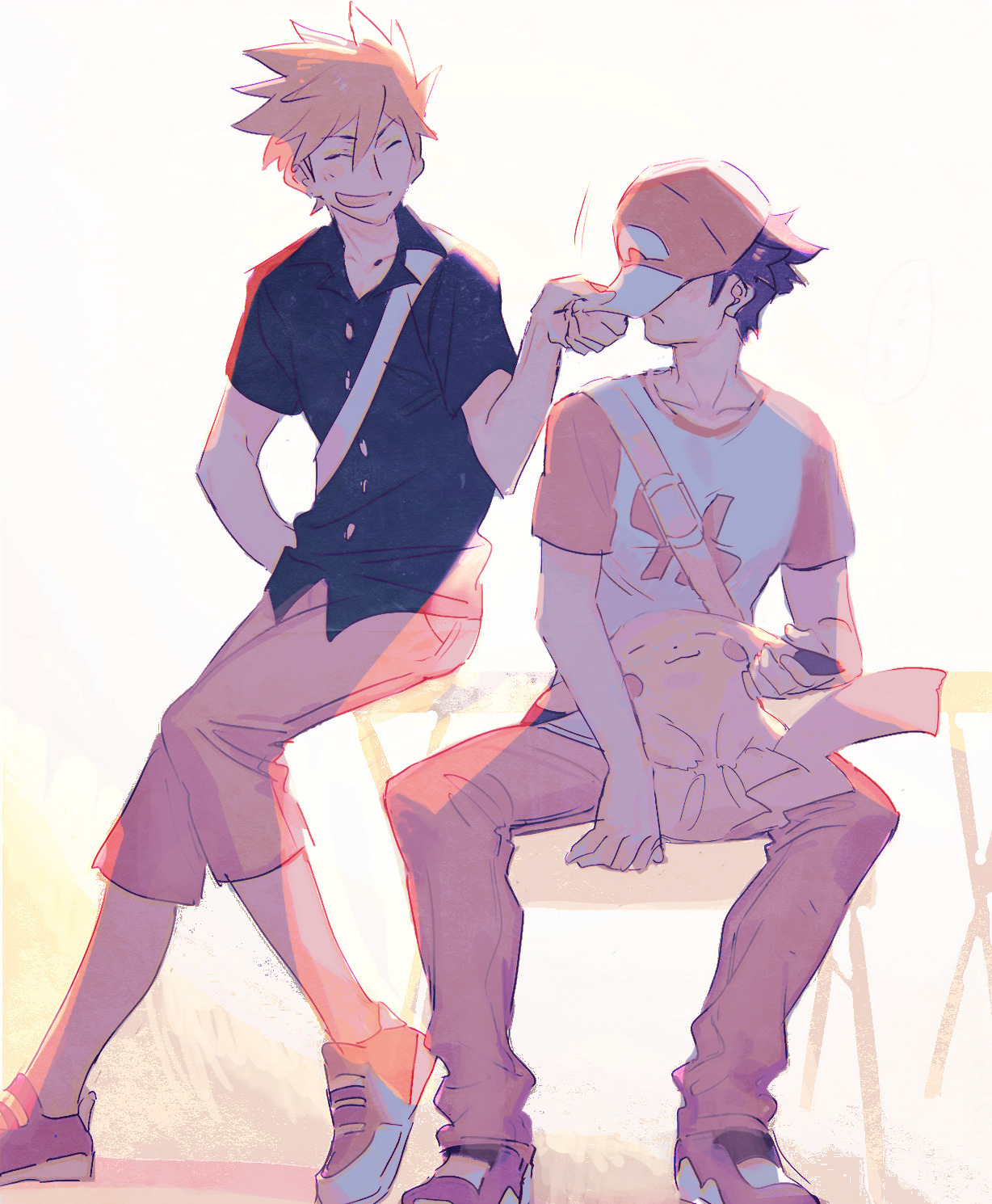Unrelated but I don't really like art of these two where Red is portrayed as being an actual mute, edgy (you know, pixiv!Red) or grumpy and stoic. He'll always be a cute hot blooded, enthusiastic guy to me I don't give a fuck. The guy has actual lines in first person in the gen 1 games.