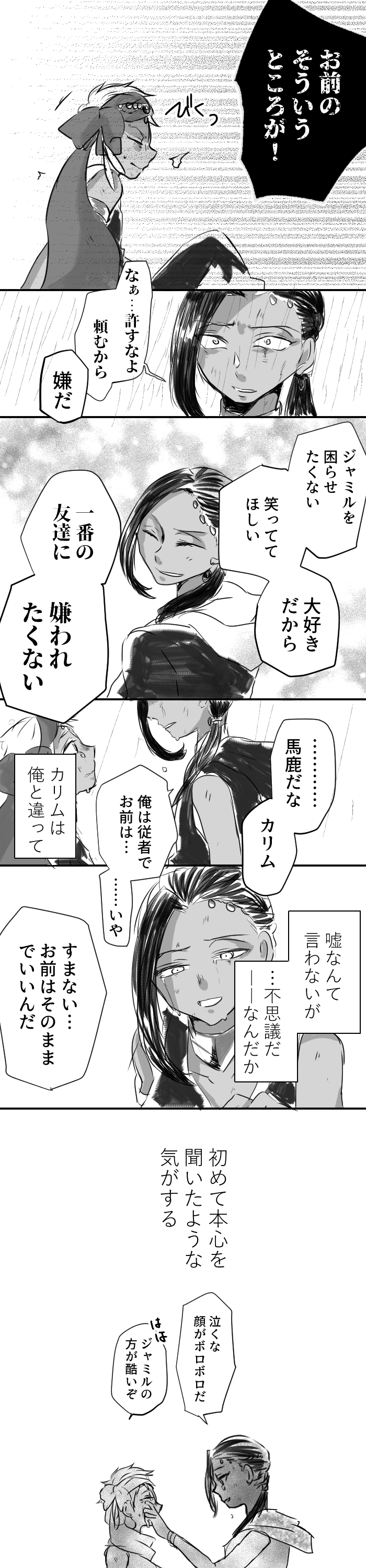 >>3037Kalim x Jamil is so good. I'm glad it's such a popular ship. Which one do you prefer tops? I know Jamil topping seems to be more popular, but I like the idea of Kalim topping and love bombing Jamil into submission.