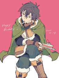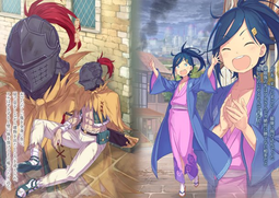 In Reprise, he dies and travels back in time to the the beginning of the story and realizes the only way to not loop is to make sure every Hero stays alive, so he undoes the rape allegation and saves Naofumi which changes the Shield Hero's personality from angry angsty guy into a very soft and gentle uke that cooks. Spear Hero begins worshipping him, protecting him and calling him "father".
