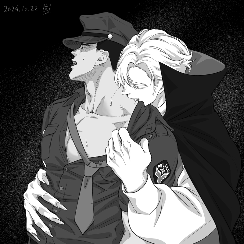 aanimedia is selling the acrylics of the cop/vampire halloween art