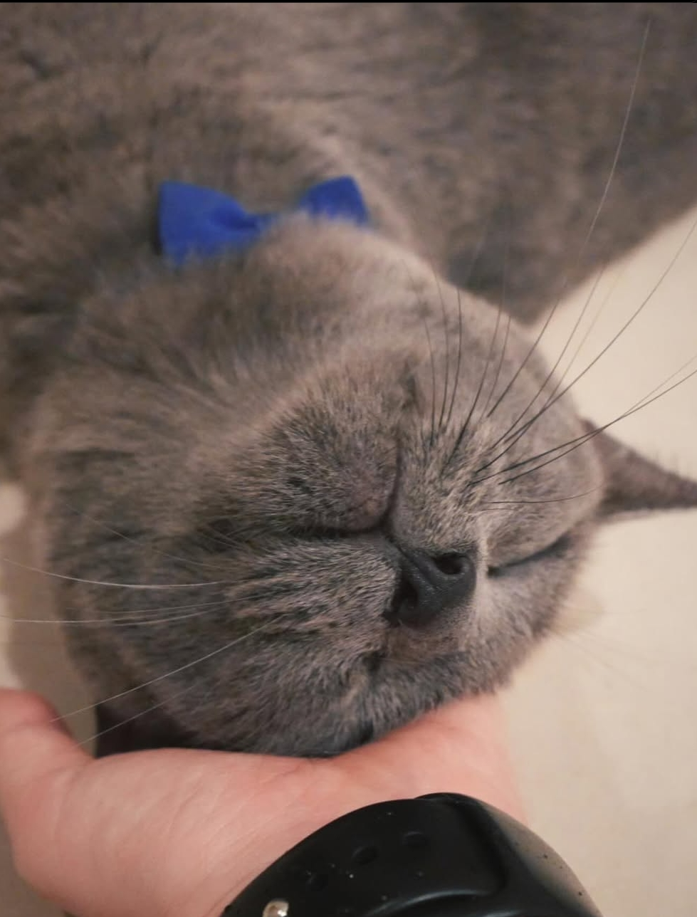 Also the cutest things are her cats. Of course she has a black and grey one,lol. The grey one also has a little blue ribbon, so obvious. That is just so cute. Pics attached