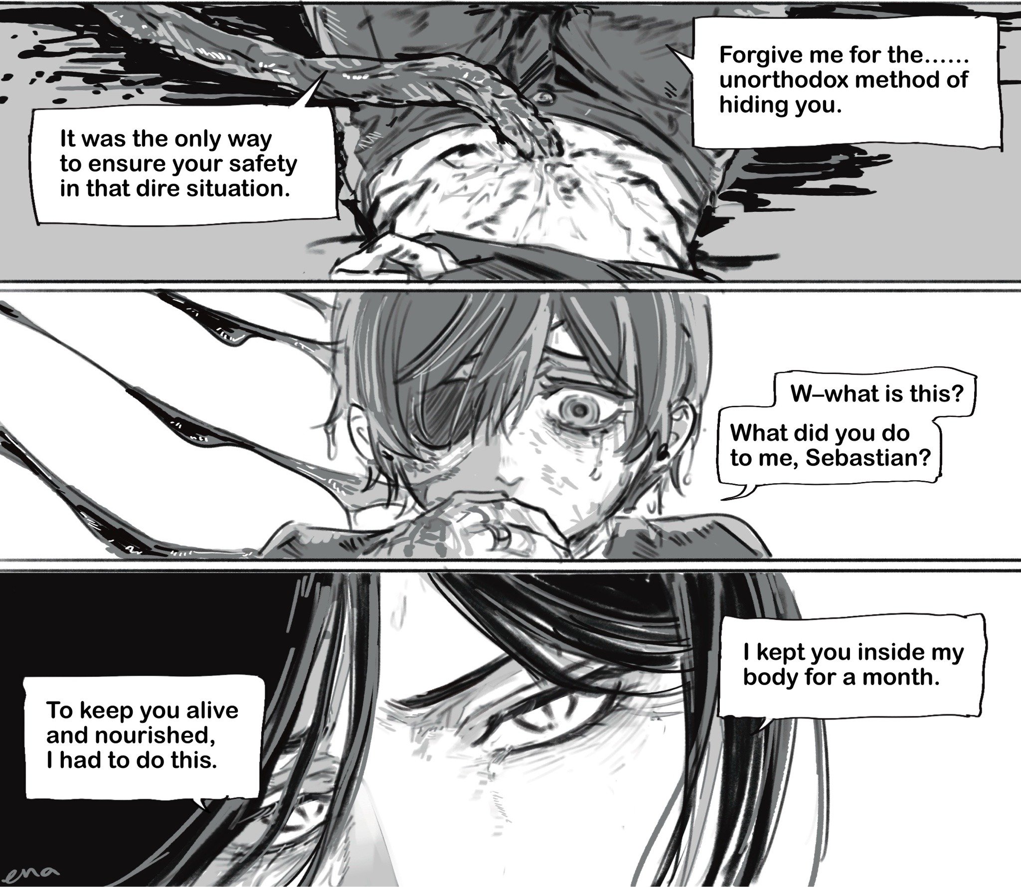my brother and myself and can die with no regret" but there are so many mysteries that I mostly worry about how the ending will happen. I'd be mad if some questions aren't answered even after the end of the manga, I started reading it when I was in high school and this shit is still not over yet so Yana better deliver a satisfying conclusion regardless of whether Ciel lives or dies.
