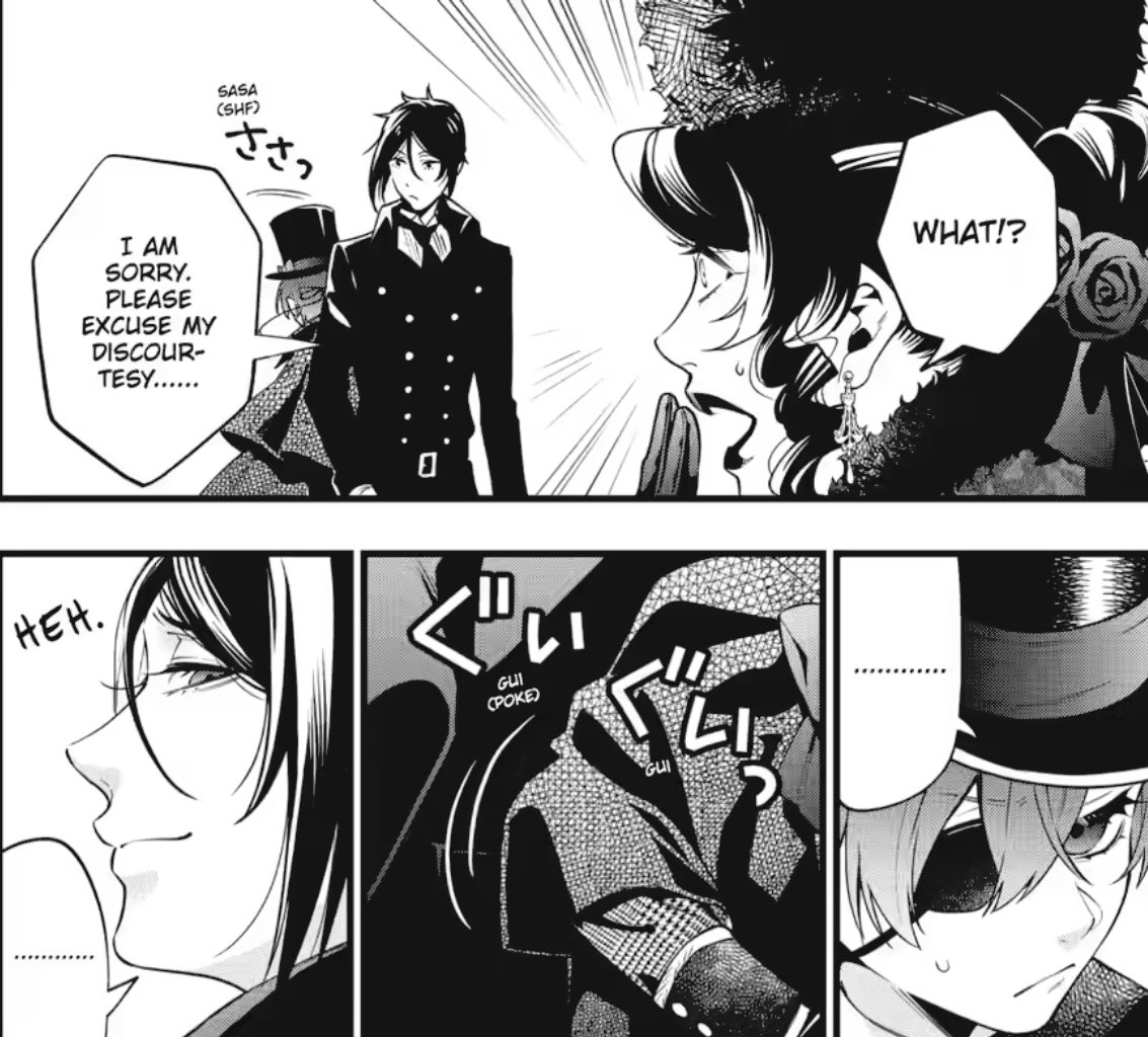 Sebastian as a character in general seems to get a lot sillier from the luxury liner arc onward. I really enjoy how human he's become over the years and I can't wait for it to come back later and bite him in the ass as a weakness.