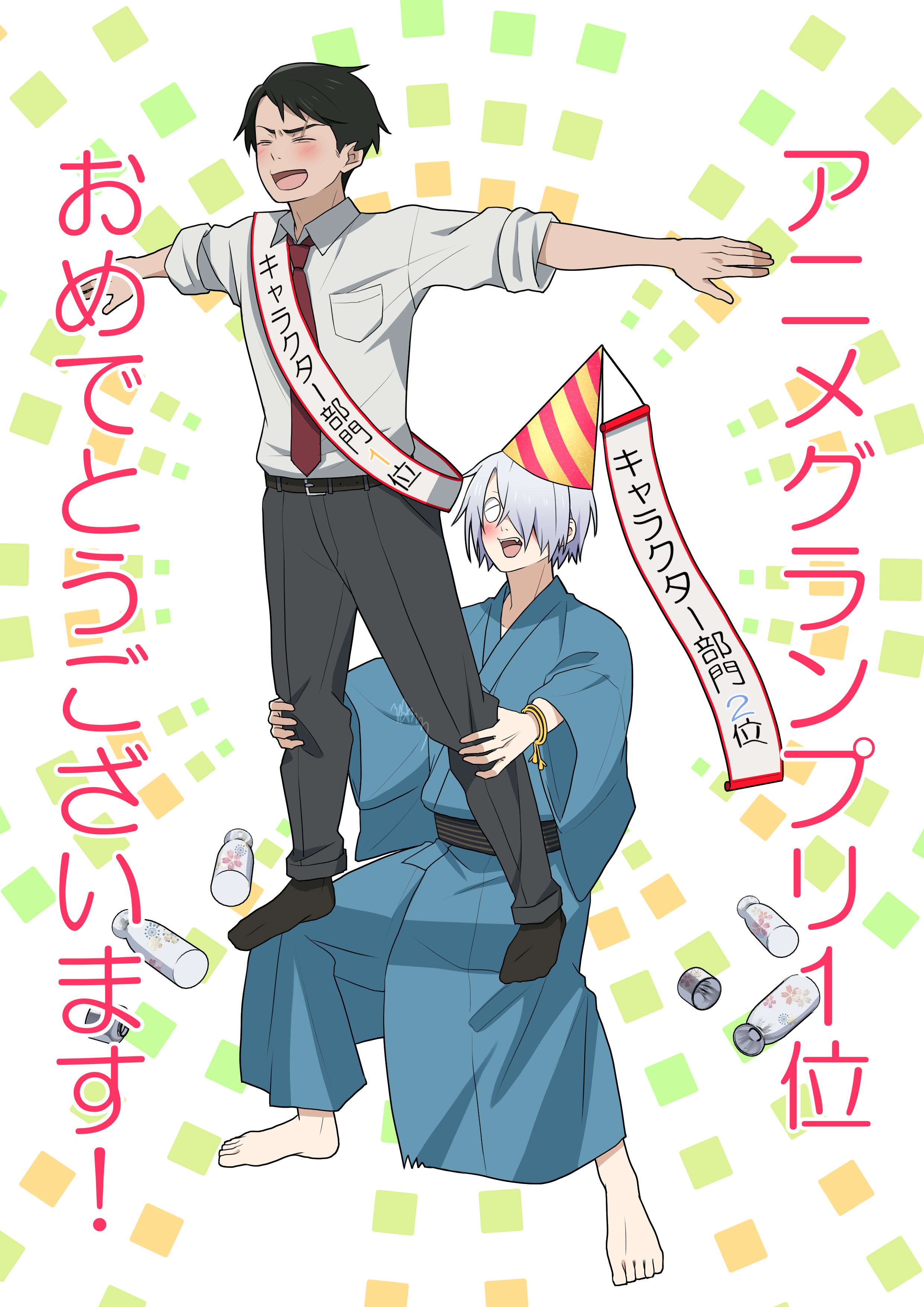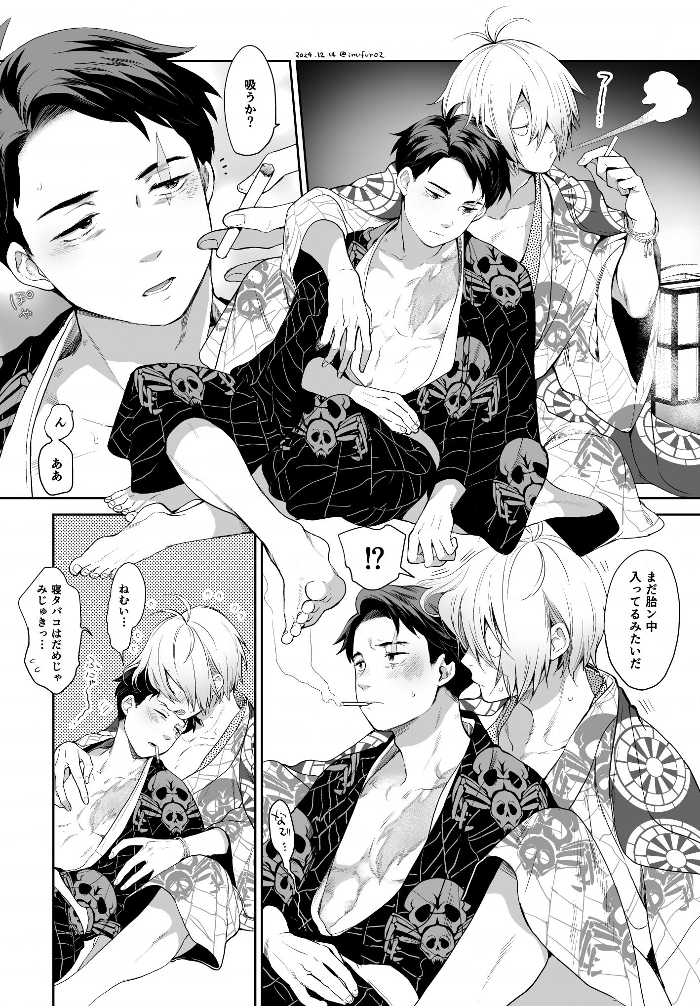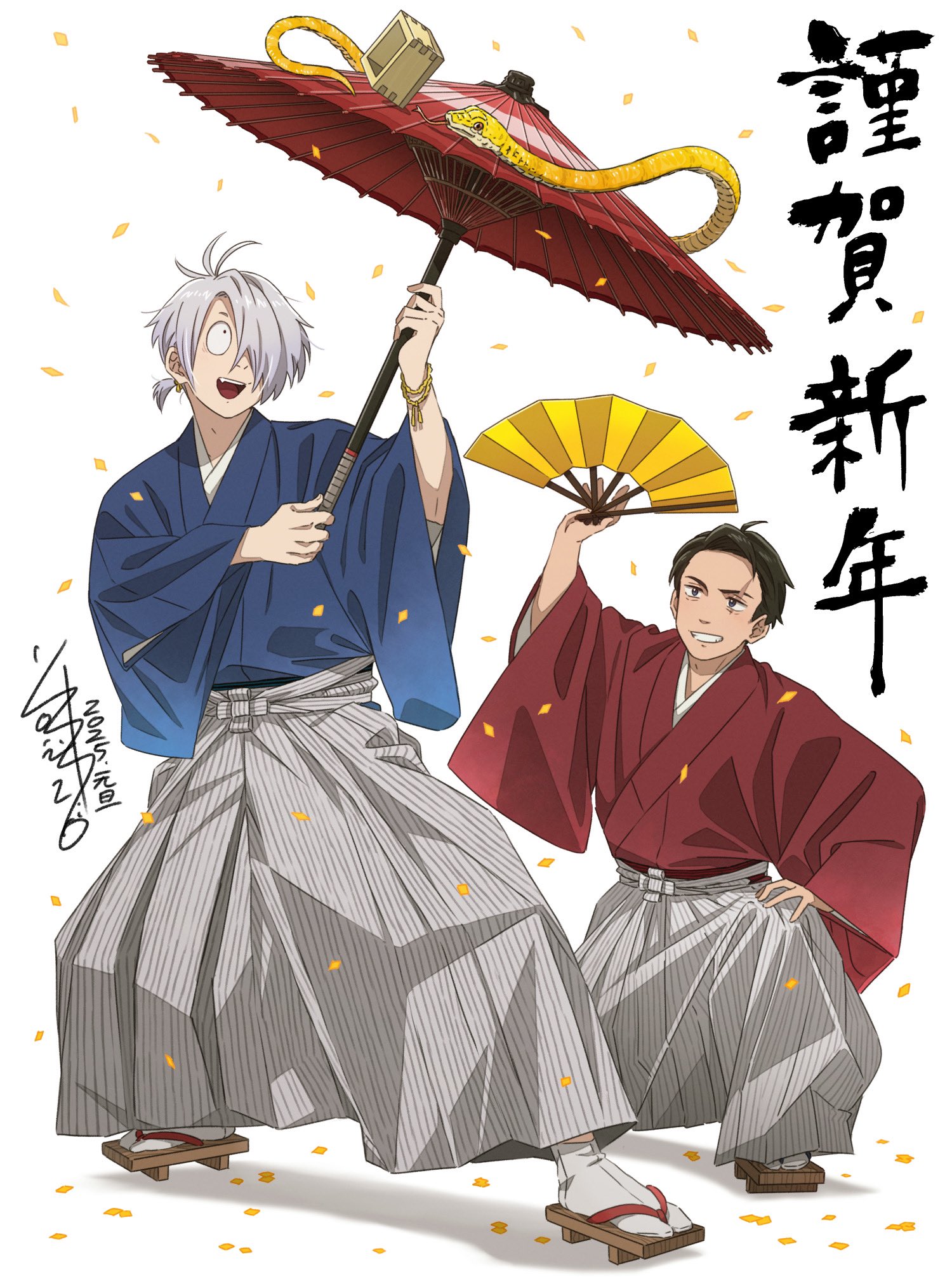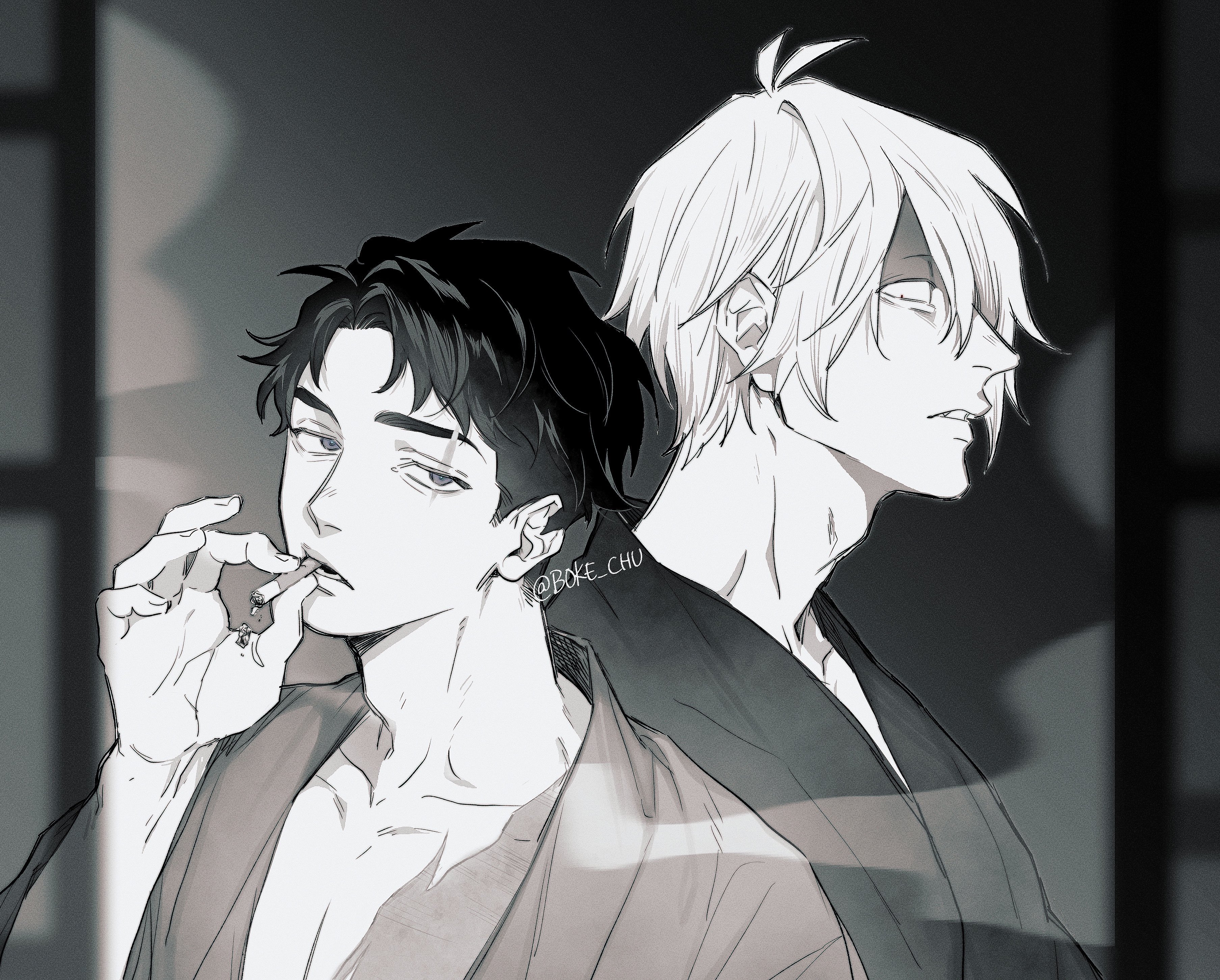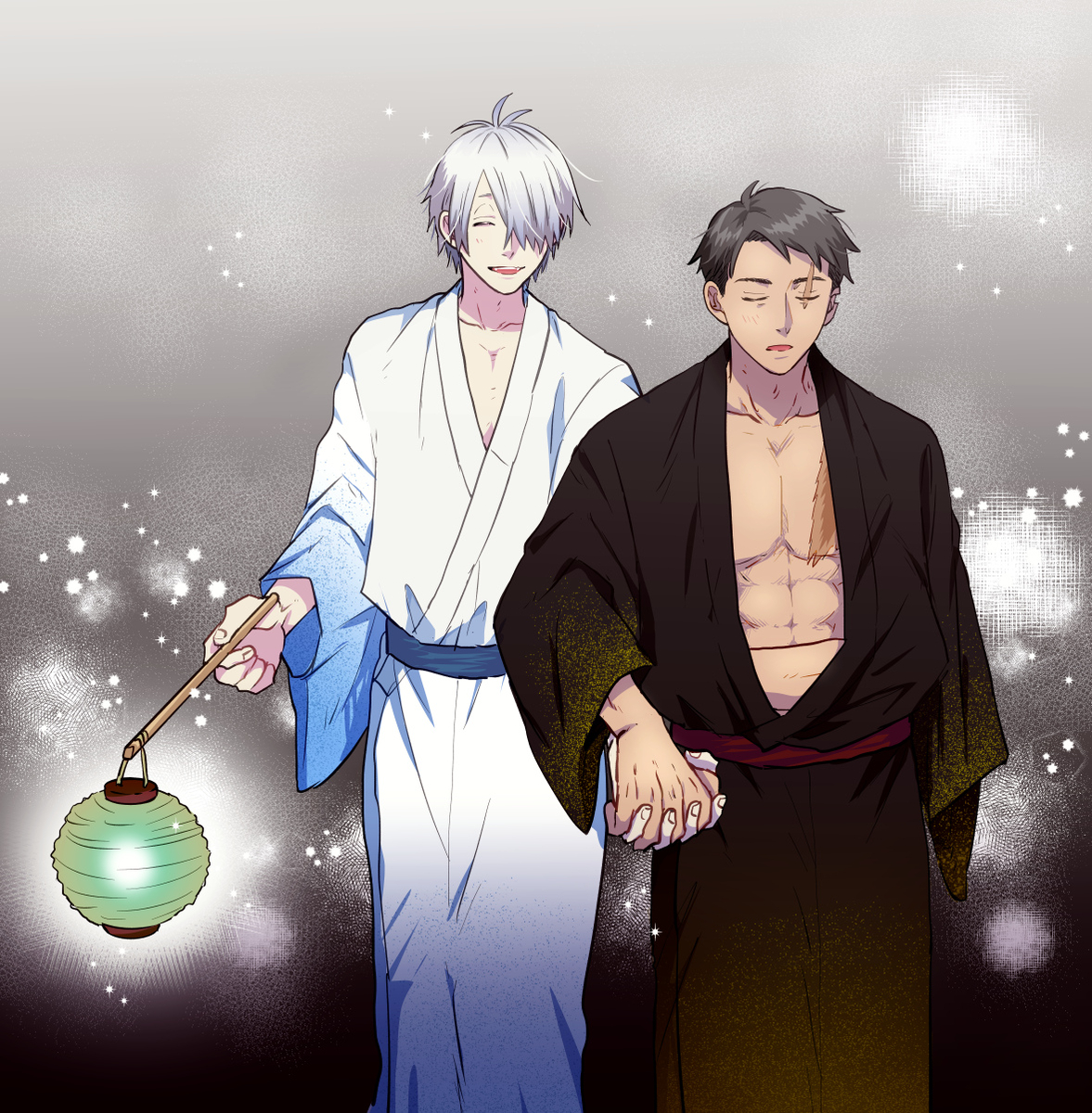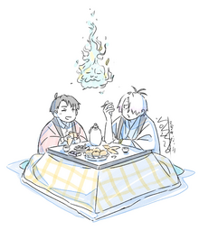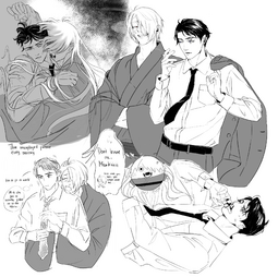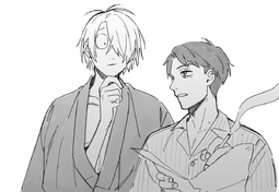 “That’s the great clan of the sea-shell-eaters, the bride seems to be from Edo.” Gegero’s voice tickles the shell of Mizuki’s ear, the heat making his collar flush. “They’re hoping to rekindle their families’ bond, by marrying on New Year’s Day.”