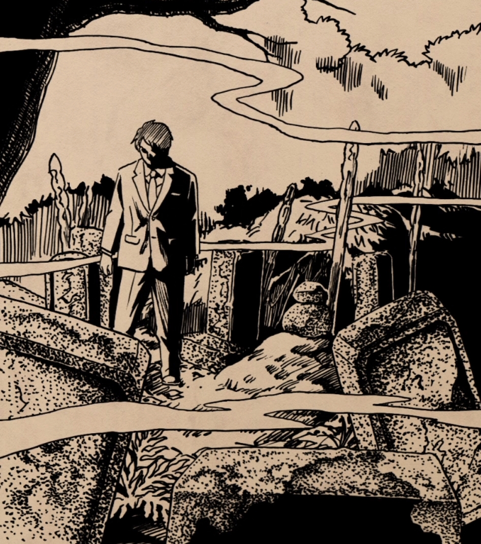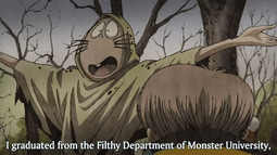 The shrine is very lively. Moss grows all over the entrance of the derelict location; a group of Tanuki pass by. Gegero makes Mizuki step aside; On further inspection, it’s a small procession, heralded by the sound of clacking beads.