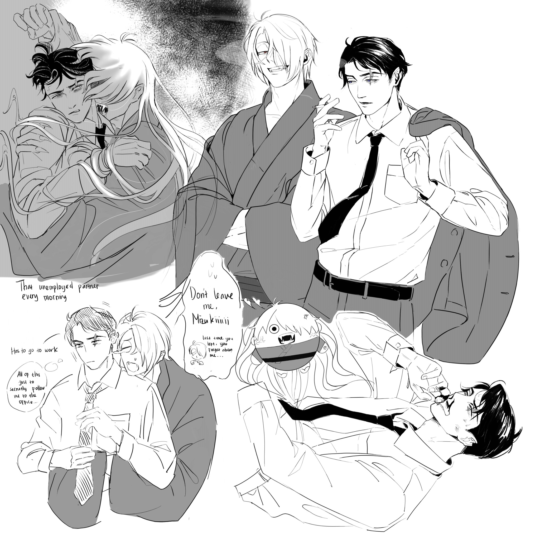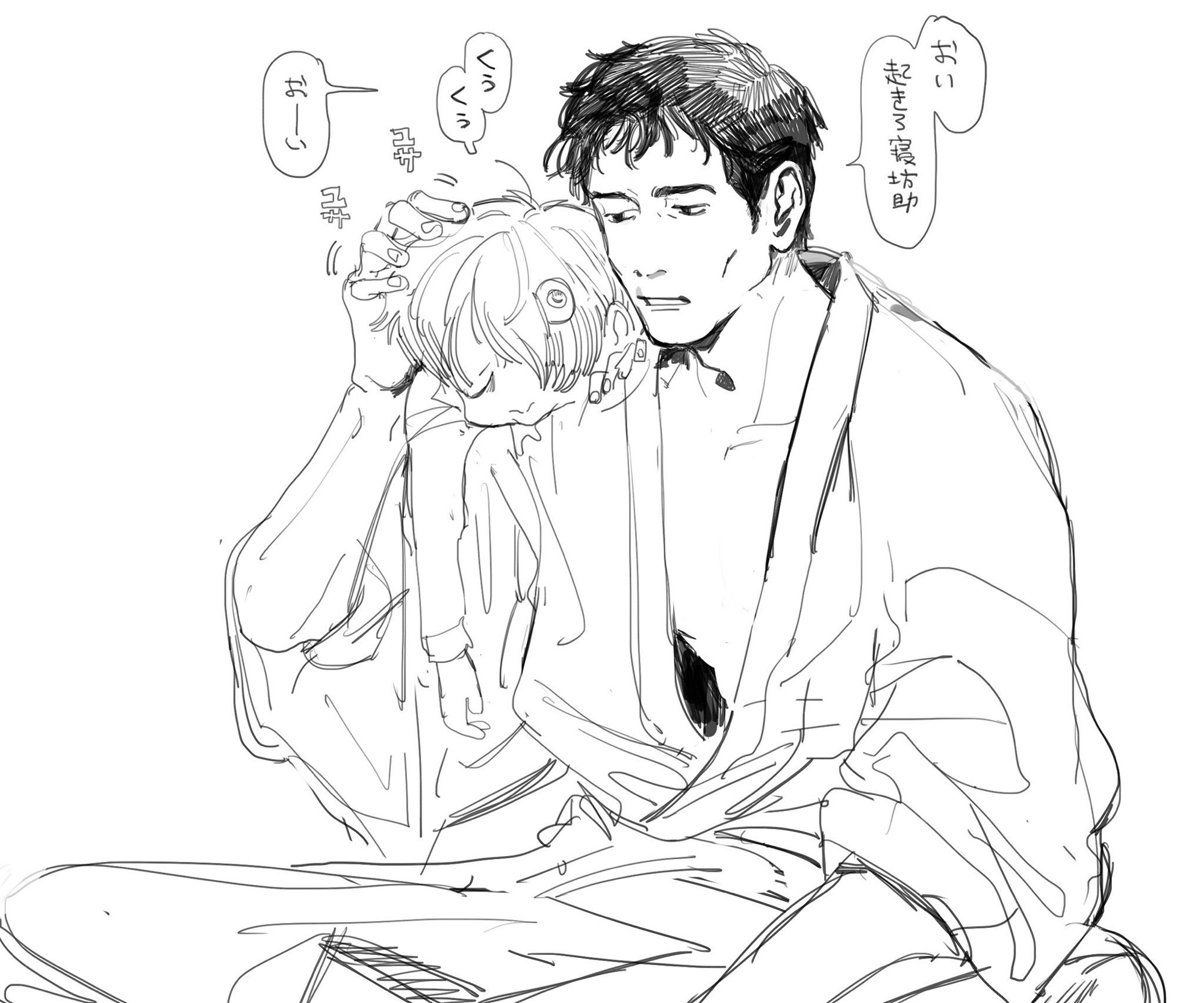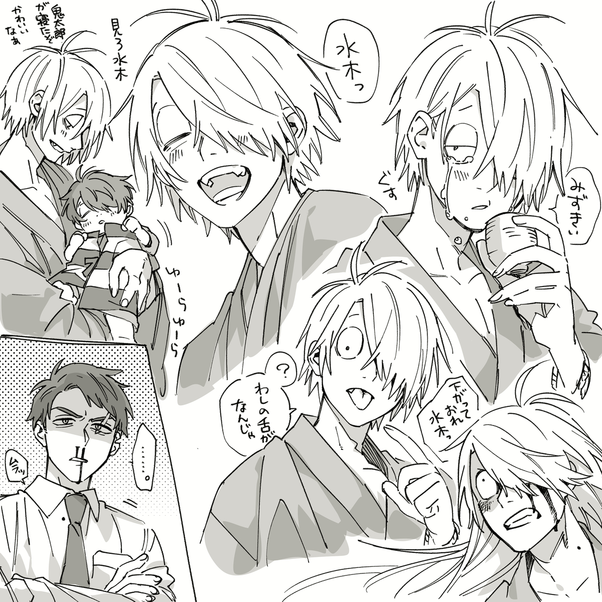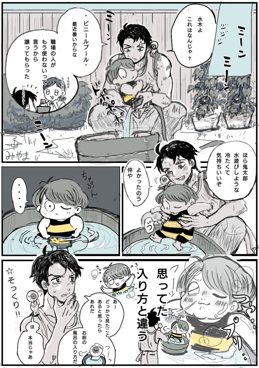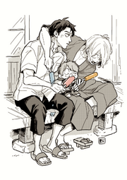 “Da.” Kitaro nods, sagely. Mizuki’s heart swells stupidly with pride, it isn’t even technically his child, but the quiet, observing tone in the boy’s voice has him impressed. Kitaro is growing into a quiet child, crying only under distress. Mizuki isn’t sure if it’s a youkai thing or not, but he appreciates it, all the same.