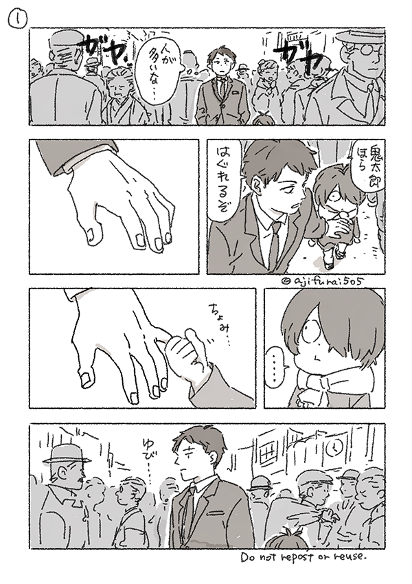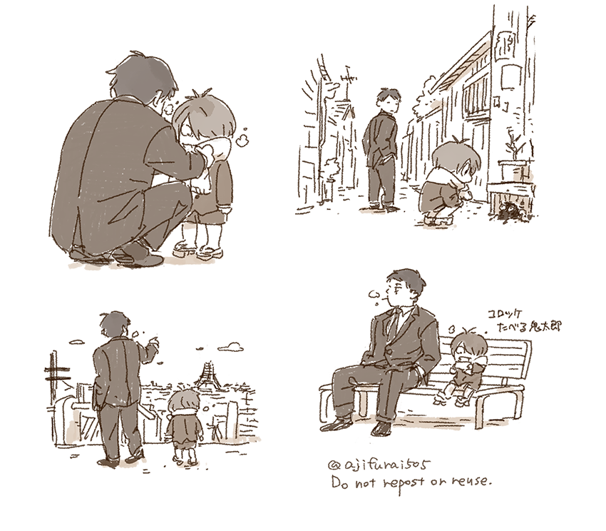 “Not now, Kitaro. We’ll look at them later, ok?” Gegero nods, gently wrapping the boy into a shirt. “We’re off to the shrine first.”