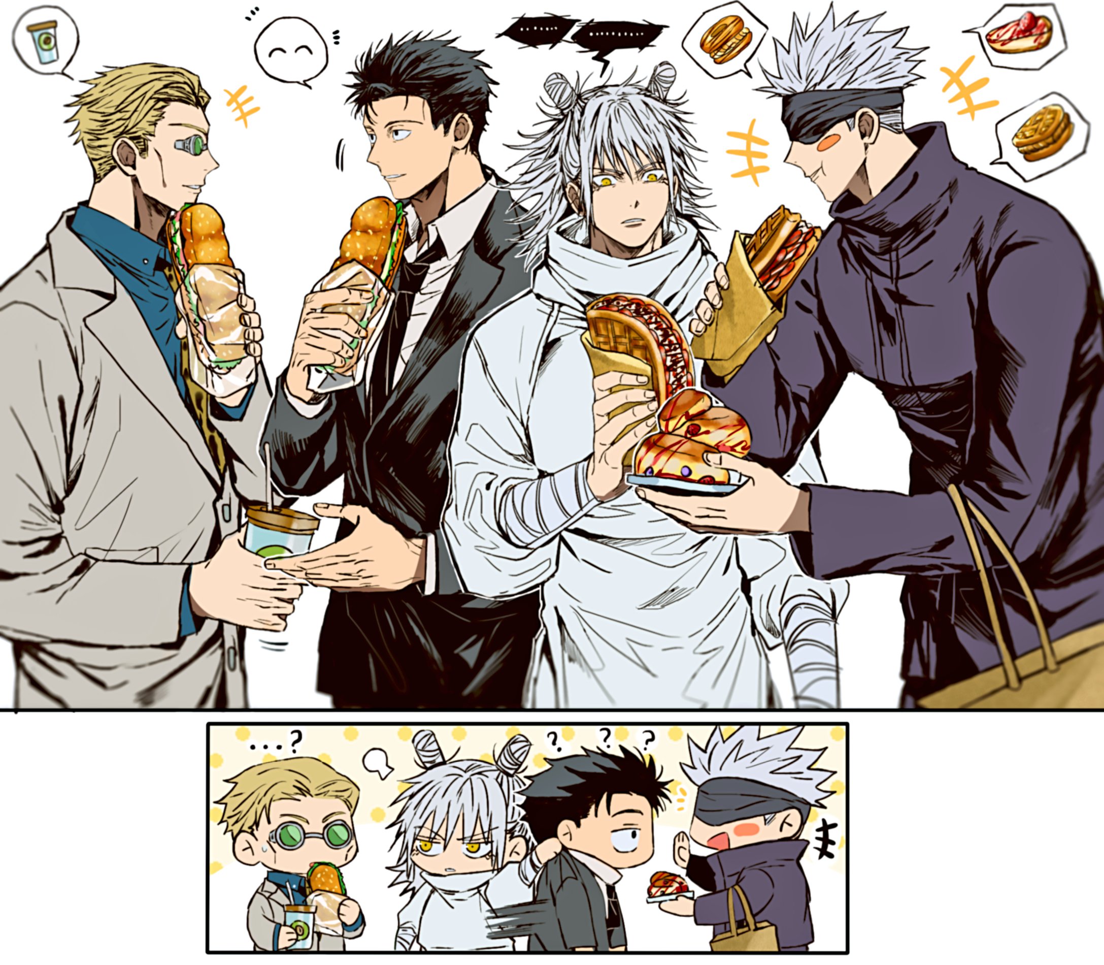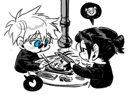 so, still, i wouldn’t consider it to be anywhere near the dumpster fire to the extent that some people did. also i got gojo/geto out of the equation, which naturally makes everything worth it. i used to have more shame about the “well, at least there’s fan content” mindset, but in this case i really did kind of treat canon as the springboard to eventually get into all the art, fic, doujinshi, etc. almost like an investment, lmao.