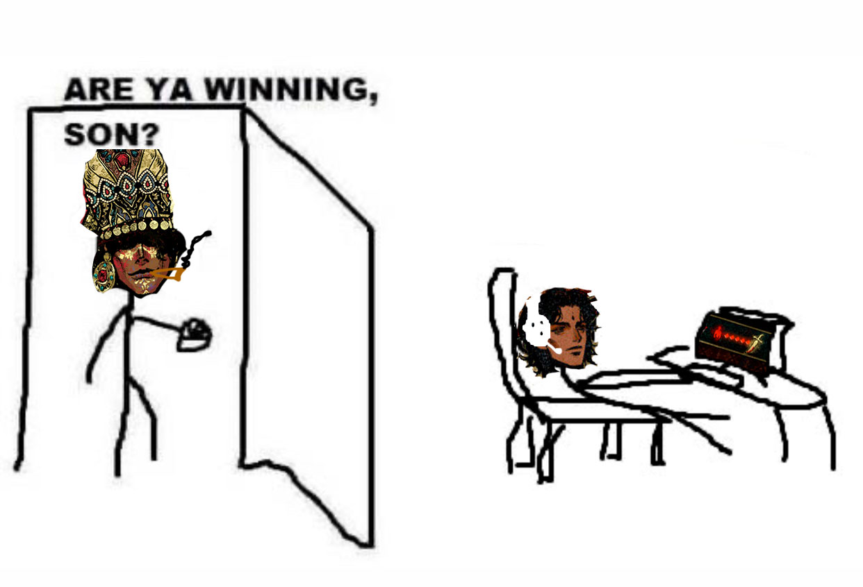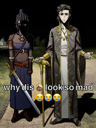 >And he is one of the choices for vizier I'm still salty that only him and Riel get special endings if sultan or vizier. I don't particularly find Riel all that special, but it would have been nice if other characters getting the hot seat would have special endings.