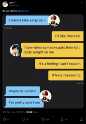 >The angriest and most spiteful to fanartists, fanfic creators, and the OG creator are never creators themselves. I'm not on discord, but I notice this too. I think a lot of these people are narcissistic, but narcissism can only be appealing when you yourself are a bnf, and even then it's meh. Coming from a he/it aiden with 10 followers on twitter tweeting shit like "[redacted] draws problematic stuff and if you support her UNFOLLOW ME RIGHT NOW" it's just sad.