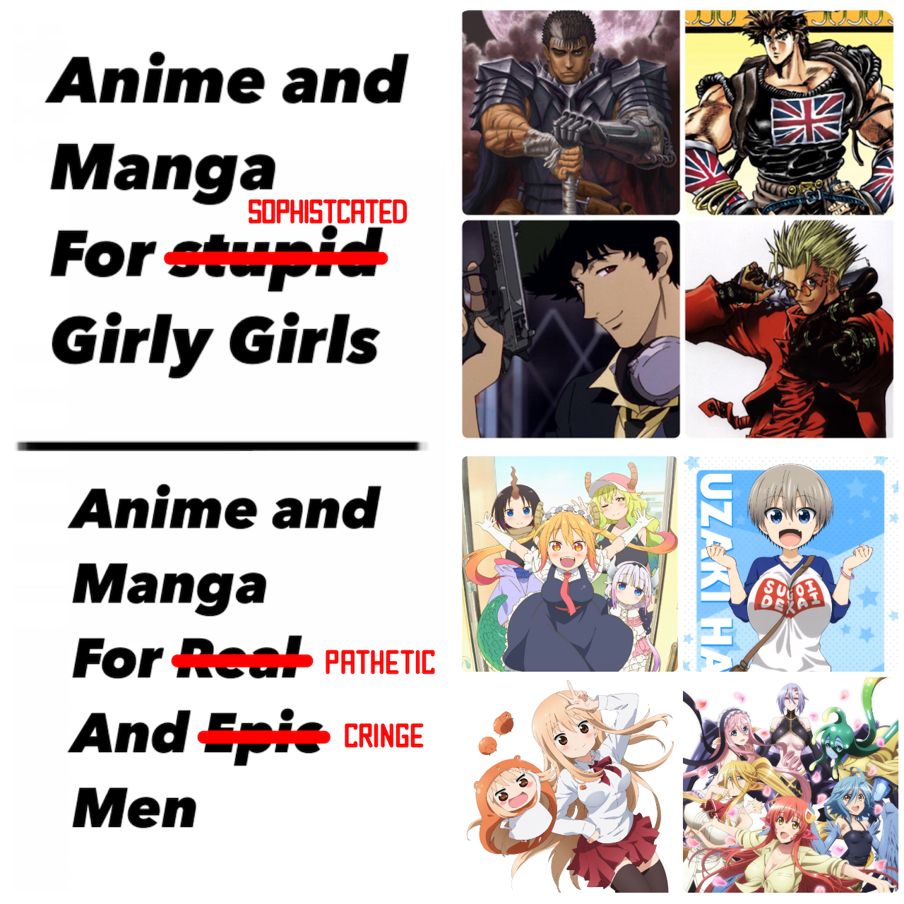 >>135I once saw a tweet from a man saying he hates BL/YAOI because the men in them were acting "feminine" and that it didn't represent the real men behaviour, while his entire account was for stanning anime girls (especially Monster Musume) that are just pervesions of what a woman is.