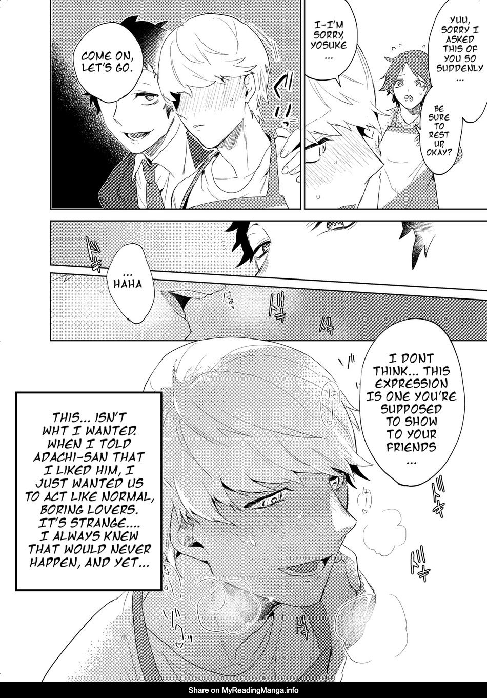gets wrapped up in doing gay porn and realizes he loves being an uke, so he breaks up with his girlfriend because he feels it's unfair to her BUT he later tells her and she becomes his #1 fan and gleefully watches him get gangbanged, still his ex-girlfriend thoughRidiculously porny concept, but it presses my exact buttons