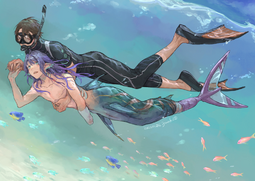 Honestly, I'm crazy on monster boys. Well, not the ones with just ears, tail, fangs or some other animal feature where it's a normal boy that is 10% animal/monster. I adore the ones where it's a centauroid, maybe 50 - 60% animal/monster (Or even in the better cases when it's more than 60%!)