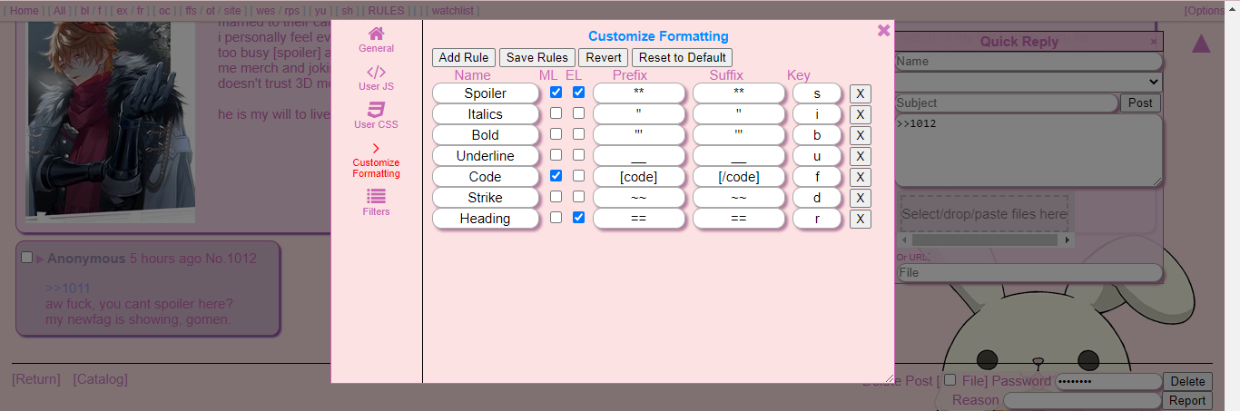 >>2073I do the husbando thing but I hate self-insert fics lol. The (you) characters are never written like me so I cannot relate to them. It feels like I was reading a story about a non-character or generic wallflower trying to get the character I like the most, so I avoid them like these fics plague.