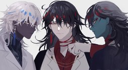 ah, but he doesn't have the audience for y/n fics- if he did, I'd probably read them- he's a somewhat obscure character AND he's hated by much of the fandom. so I just drool over fanart and read fics pairing him with random characters- there's maybe three actual pairings for him- 1 gay 2 straight- and I do think they are all pretty cute(I do wish there was at least 1 more gay pairing though because the only one that exists pairs him with an even more obscure character and is really hard to come by as a result), but most fics involving him are noncon smut of him getting railed by some random character, fics that have him as a side character(translation: he gets two lines of dialogue) or are non-romantic whump. I do like the noncon and whump fics tho :P