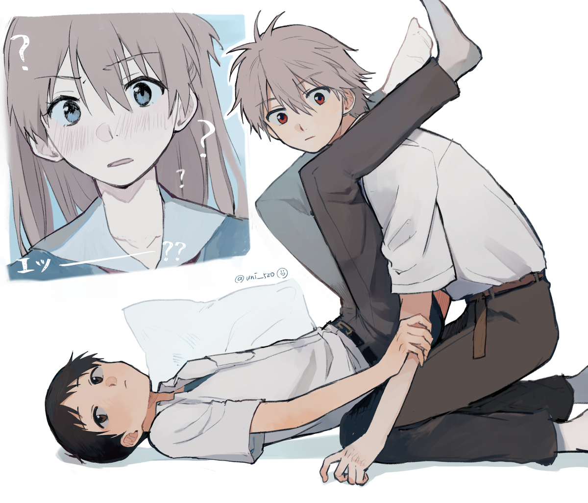 >>4311>or 'Sick of this life fuck it all' Shinji taking his rage out on a cute boy who accepts all of it.This is why I hate shinkawo, it's so OOC and Kaworu is way more likely to be the rapey one (he even gropes his ass when they're bathing in one of the spinoffs). Shinji is one of those characters in perma uke zone to me.