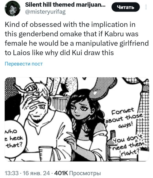 >>4282>The most jarring one lately is Laios/Kabru. I felt like I was going insane seeing all of that art when the anime dropped because for years the only DM yaoi I ever saw was Mithrun/Kabru.Man, I thought I was the only one.I don't even know what they see in it.