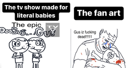 Now if you have like Arthur investigating a murder mystery with Mr. Ratburn or Bert and Ernie suffering from AID as one dies in slowly others arms thats too far detached from the source material and too grimdark to take seriously.