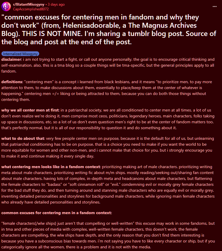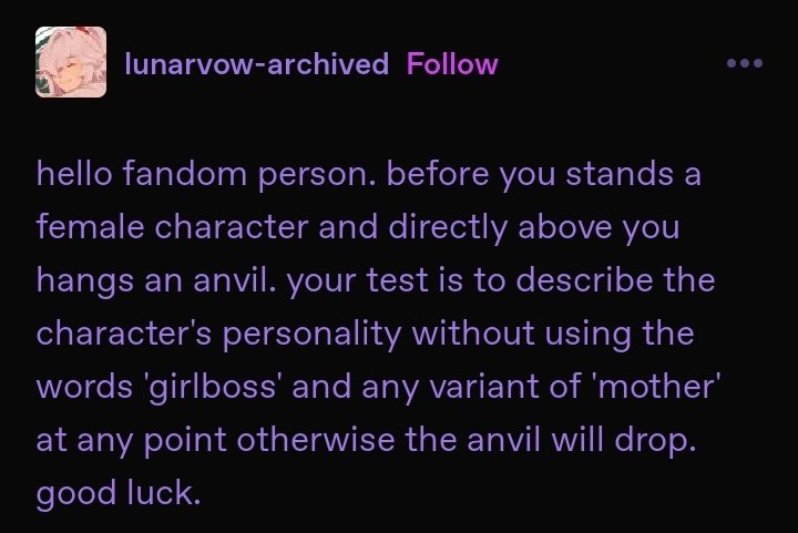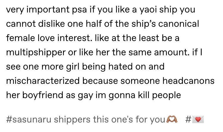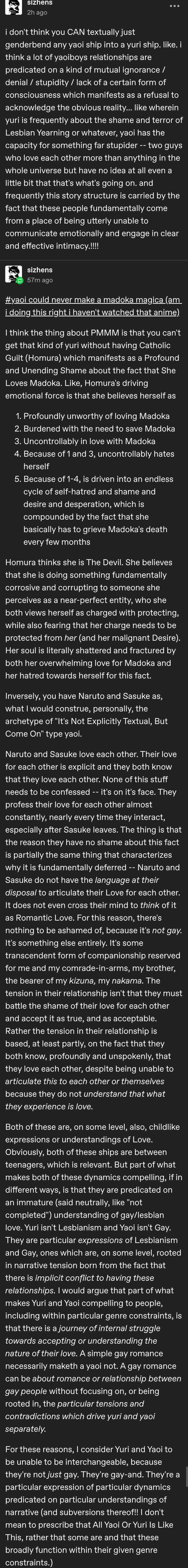>>6273While reading, I thought to myself, "people who make these posts were in the Naruto fandom in the 2010s, and never healed from that emotionally," and then I saw the tags.