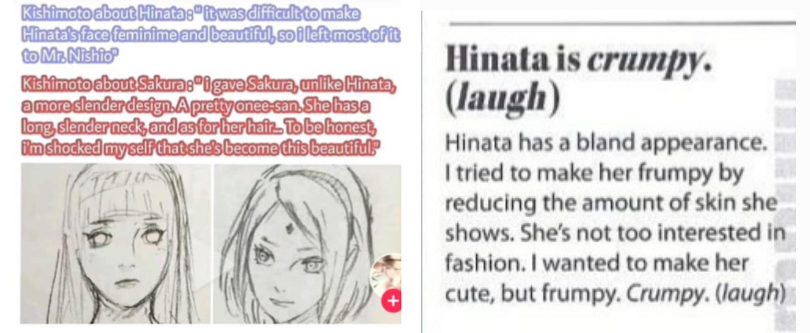 >>6298>because she is less conventionally attractiveIt's literally the opposite, hinata only has her body but Sakura was always supposed to be the prettiest girl in naruto, the girl naruto always liked, while hinata was the plain one, and most naruto self inserters at the time all shipped narusaku, infact they were the biggest whiners when hinata got with naruto, and that's where the hinata hate started.