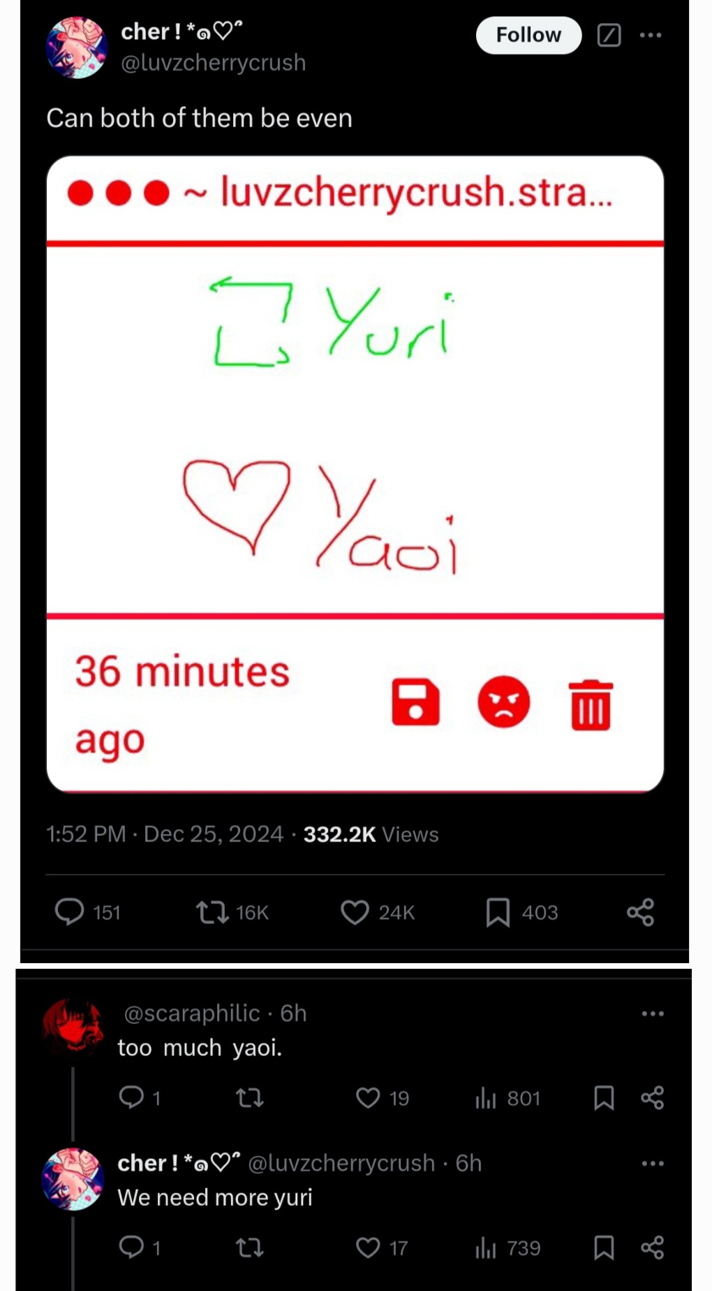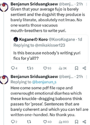 >>8745Life gets so much better when you only interact with yuri/het fans who are fujos first. I really don’t have the energy to deal with these kinds of people anymore.