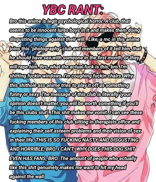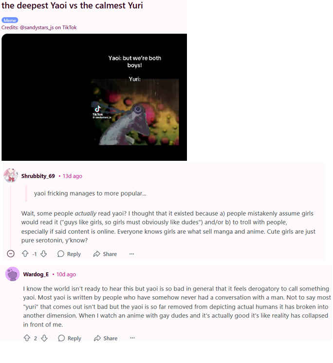 Also, this is written as is yaoi is only pwp. Even the most porn filled manga still have some type of plot and character, (even if only loosely connecting the sex) that anyone can read, enjoy and empathize with, bruh. They've forgotten we are all human