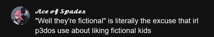 Btw the same people usually have "pro shipper dni" in their bios while shipping school teens together lmao