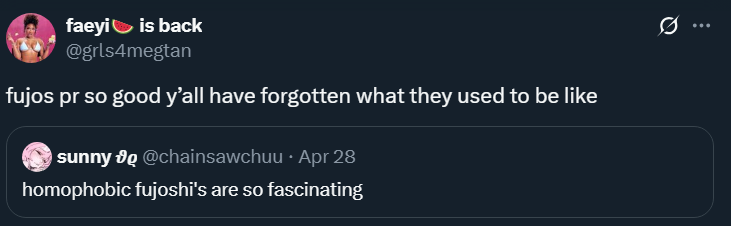 i'd expand on why other women including straight ones hate on fujos too but it would be a too speculative, long post lol. but ultimately it's more about hating any expression of female sexuality that feels threatening to the system